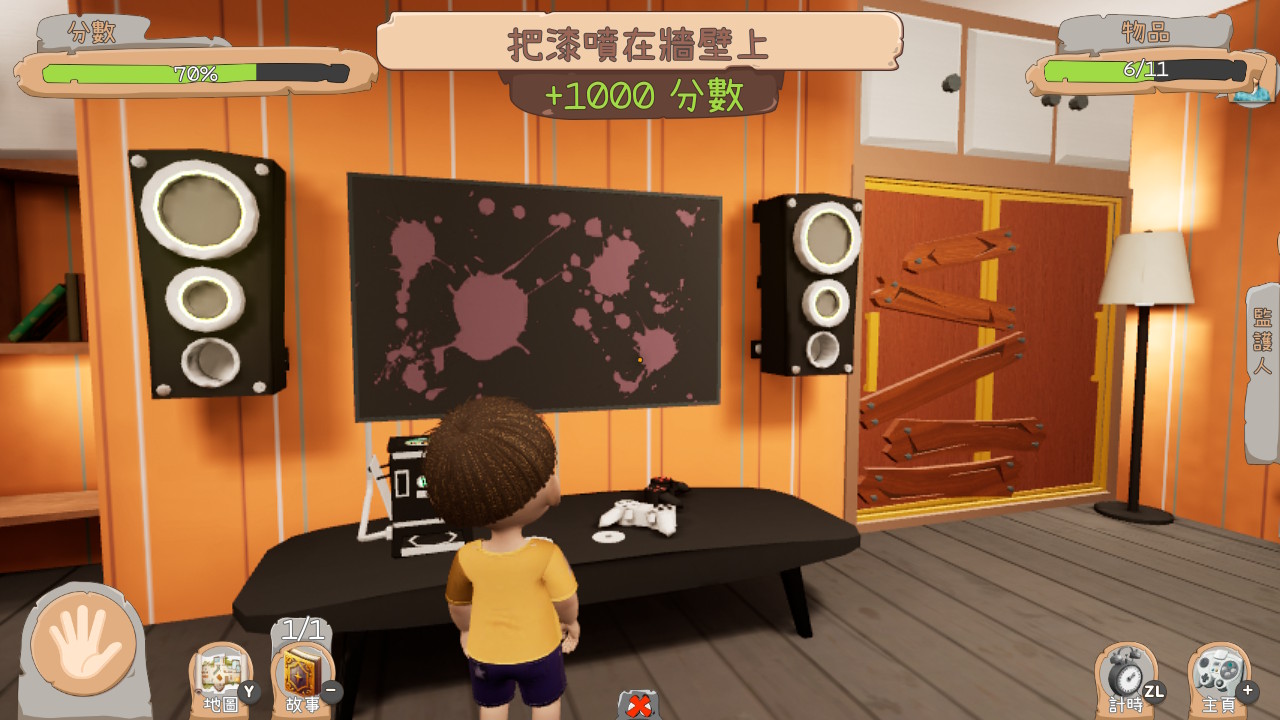 在《小惡魔 大混亂》中,玩家扮演一個探索養父母房子的小男孩。在不被養父母發現的情況下,破壞傢具,組裝陷阱,在房子里製造惡作劇。在各種家庭中探索和製造混亂,獲得成就以達到更高分,並收集秘密故事片段以揭開小惡魔的背景故事。