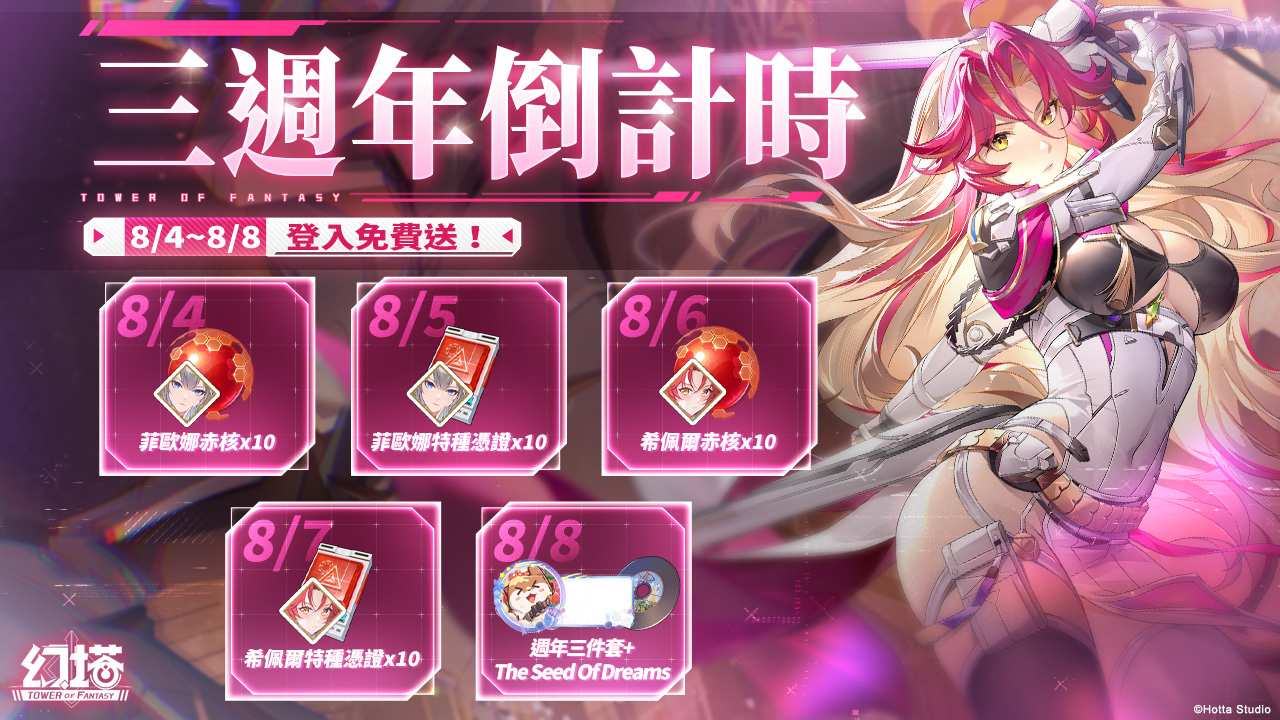 《幻塔》即將迎來遊戲上市三週年,宣佈全新 5.2 版本「歸鄉夢裡人」開啟,雷屬性擬態角色,希佩爾登場,更同步解鎖主線劇情新篇章。為感謝授權者長久以來對《幻塔》的支持,營運團隊籌備一系列福利活動回饋玩家,2025/8/8 當天登入遊戲即可獲得週年三件套限定外觀裝飾及限定 CD-The Seed Of Dreams;同步開啟「星光夏日祭」、「前進!銀河大富翁」等週年限定活動,送出更多好禮。