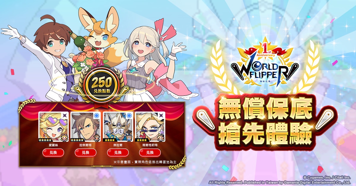 遊戲橘子代理、日本遊戲廠 Cygames 與子公司 Citail 共同研發的彈珠台動作 RPG 手遊《彈射世界》迎接繁中版一週年。為感謝玩家一年來的支持,官方祭出【1 週年慶 3 彈】限定 Mission,可獲得豐富的夢想紋章及星導石獎勵,【每日 1 次免費 10 連抽轉蛋】最多抽取 50 次轉蛋,【彈射賞】首次推出活動挑戰結合抽獎遊戲,多款實體周邊、虛寶通通帶回家。此外,「無償保底機制」搶先體驗版上線,達 250 點可任意兌換 Pick Up 角色,同場加映「復刻角色精選轉蛋」泳裝角色強勢回歸。