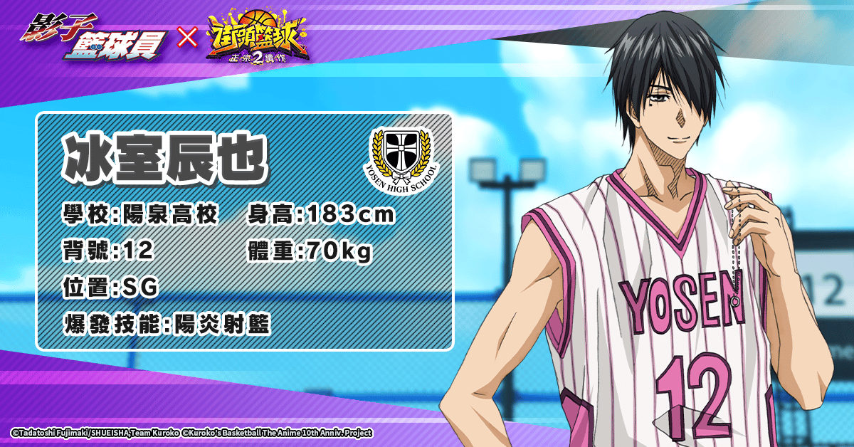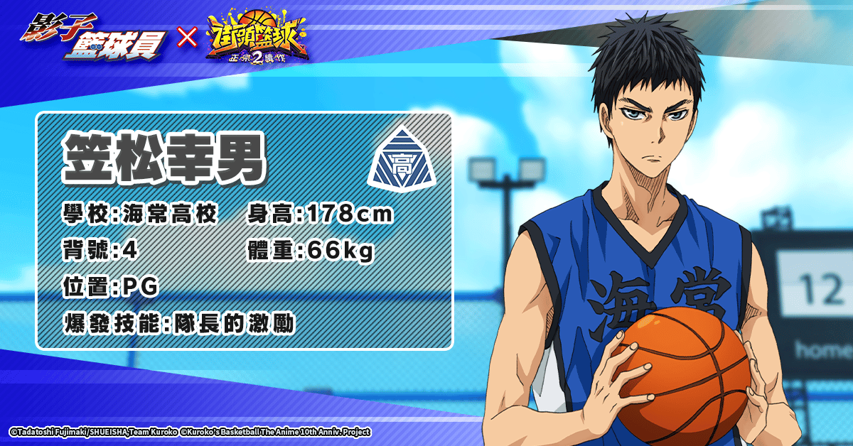 慶祝《影子籃球員》動畫播出十週年紀念,合作第三彈即將開始,現在參加聯動事前預約活動,會抽出 5 位幸運兒獲得「笠松幸男」。等合作開始後登入遊戲,還可以免費獲得「黑子哲也」,同時會有許多《影子籃球員》的相關活動,都會公佈在官方粉絲團。