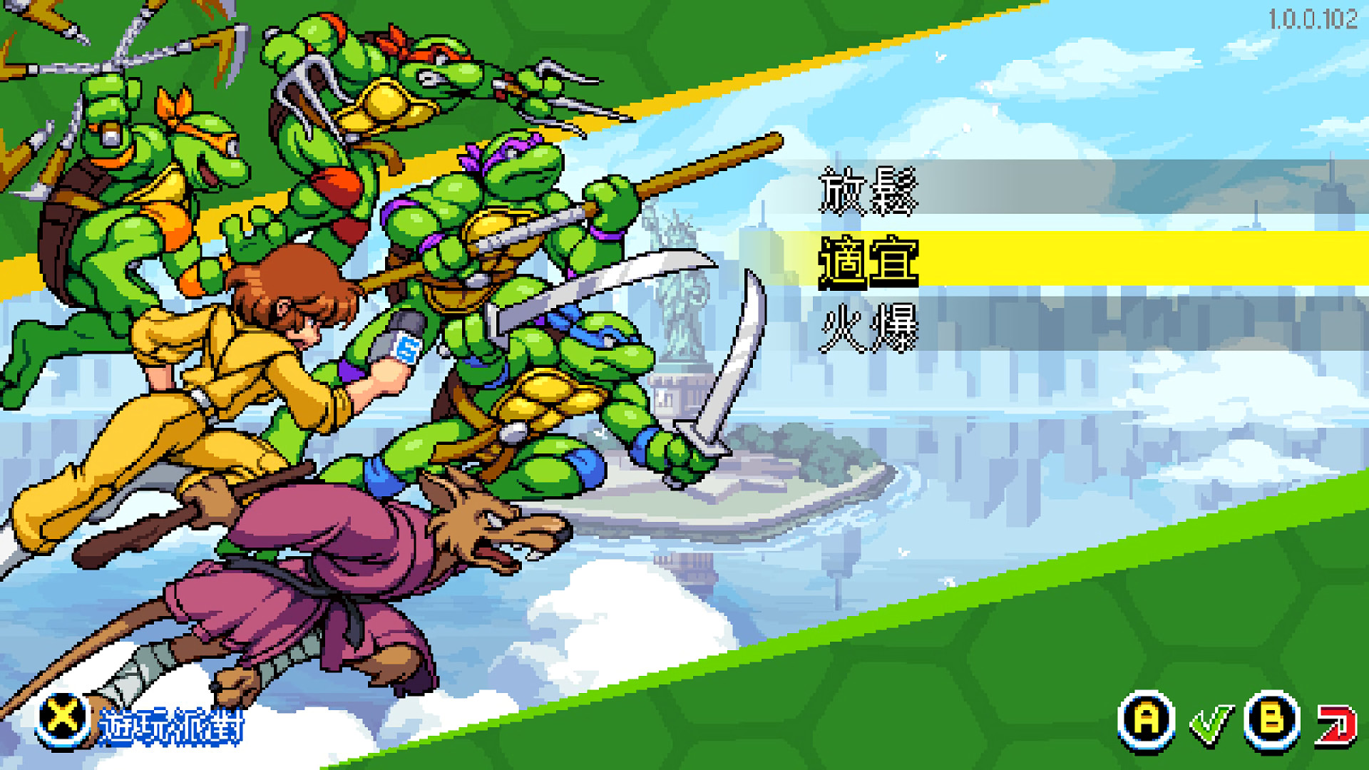 絢麗的點陣圖美術背景中狂飆突進,操作最喜愛的神龜們打倒無數充滿威脅的敵人。每個忍者龜各自擁有不同的招式、動作和技能,不同的角色選擇能帶來截然不同的體驗。選擇心儀的戰士,體驗驚心動魄的格鬥招式,使出令人驚奇的特殊忍者能力,用激進的連招使對手毫無招架之力。