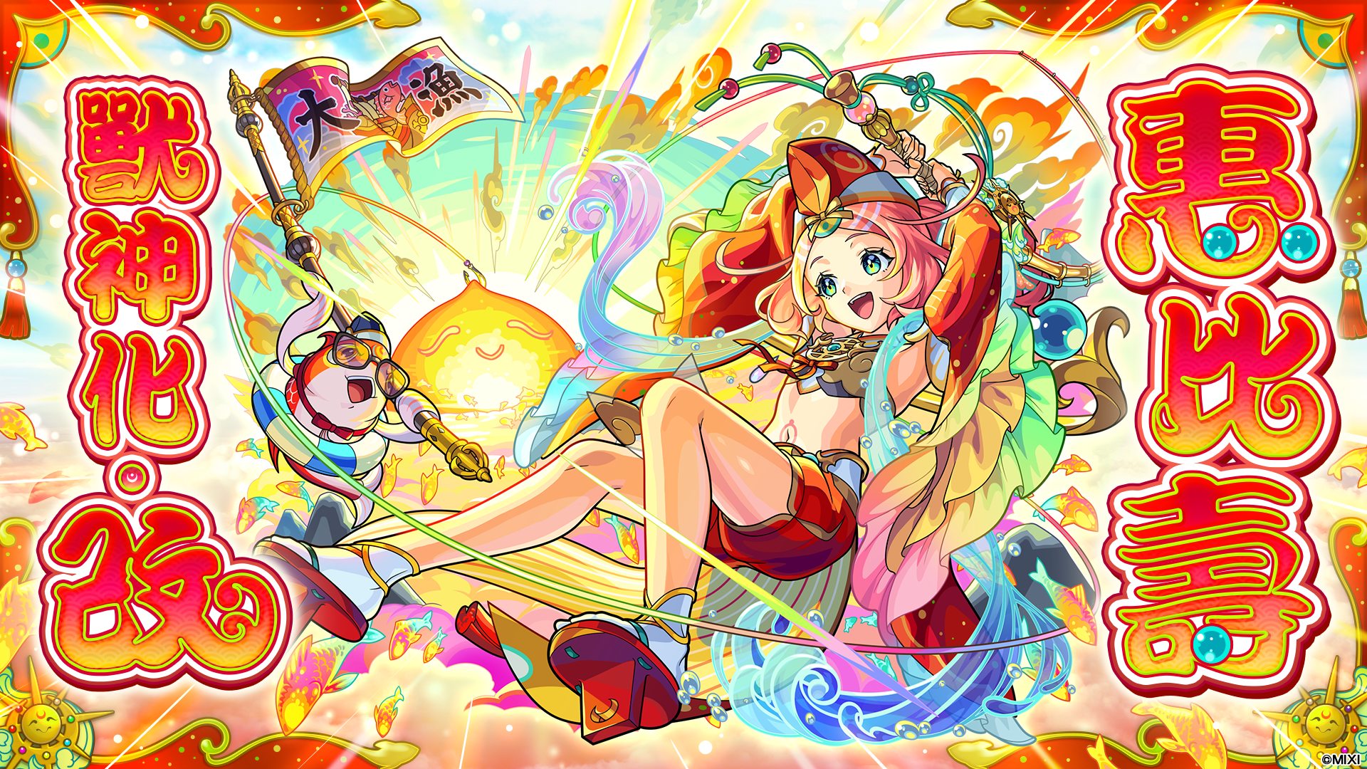 新年特別版「超獸神祭」在 2025 年同樣會期間限定出現新春限定角色。「妮奧」、「阿碧絲」穿著充滿年味的和服造型,也將於「新年!特別額外附贈 超獸神祭」期間限定出現。祛除災厄、傳遞笑容的「惠比壽」的新型態也正式解禁,新的一年,笑福神「惠比壽」來釣起大家的笑容,請準備好獸神龍跟其他獸神化素材迎接她。