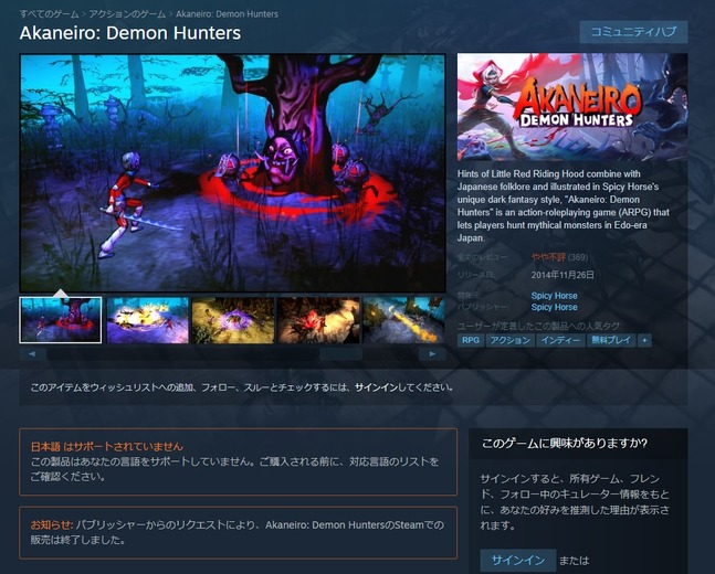 但其實這次並非這款遊戲本身的問題,而是同樣開發團隊 Spicy Horse 的作品《Akaneiro: Demon Hunters》造成的原因。簡單地說就是 Steam 的《Akaneiro: Demon Hunters》發生了玩家無法進入遊戲的狀況,雖然有找出解決方法,但官方還是決定暫時停止這款遊戲的銷售。