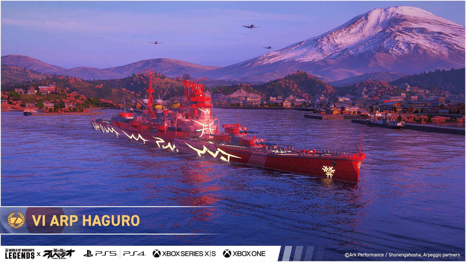 延續先前的合作,全新《蒼藍鋼鐵戰艦》主題合作內容將於《戰艦世界:傳奇》最新版本登場,即日起為家用主機玩家帶來一系列全新內容。此次合作將推出特殊加值 VII 階重型巡洋艦 ARP Haguro 和 ARP Nachi 以及傳奇戰艦 ARP Musashi。除了三艘新戰艦外,另將推出四名具有獨特技能的新指揮官,包括 ARP Haguro、ARP Nachi、ARP Yamato 和 ARP Musashi。除了這些新內容之外,玩家還能使用特別設計的迷彩和四面全新紀念旗幟來為戰艦進行客製化。