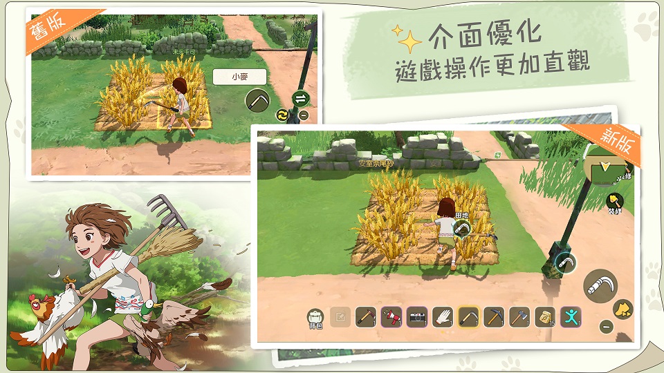 修復在原版中諸多BUG,遊戲中讀取載入速度加快並移除相關技術性漏洞,並針對不同機型的性能最佳化。刪減了重複、枯燥的任務體系,主線任務流程加強,讓玩家可以回歸更純粹的模擬田園生活體驗,玩家每日遊玩選擇更加自由,與原版對比將有更充實、更有趣的遊戲感受。