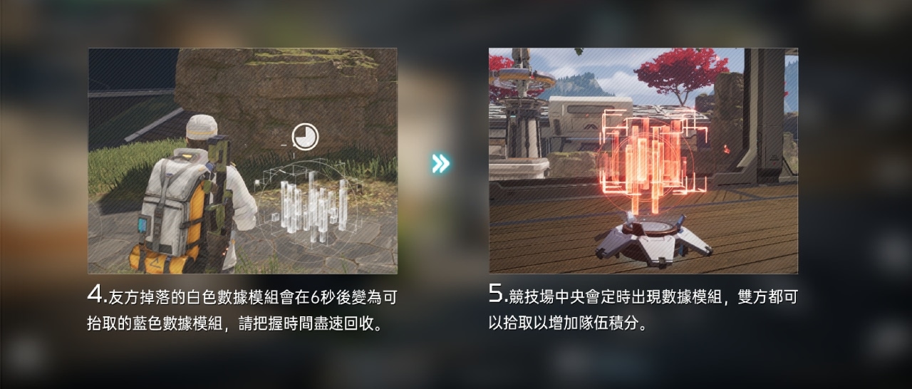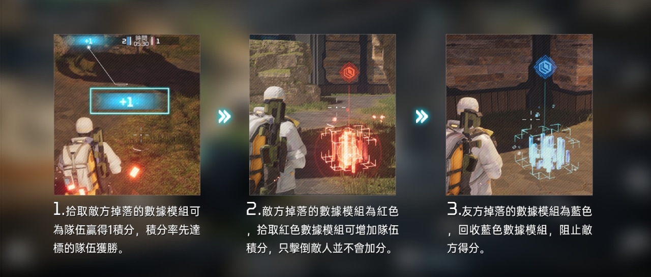 讓 PVP 作戰更為緊湊激烈,此玩法作戰範圍更小,也更加考驗玩家的戰術運用。具體規則為玩家被擊倒後掉落數據模組,收割敵方玩家的數據模組以達成勝利。