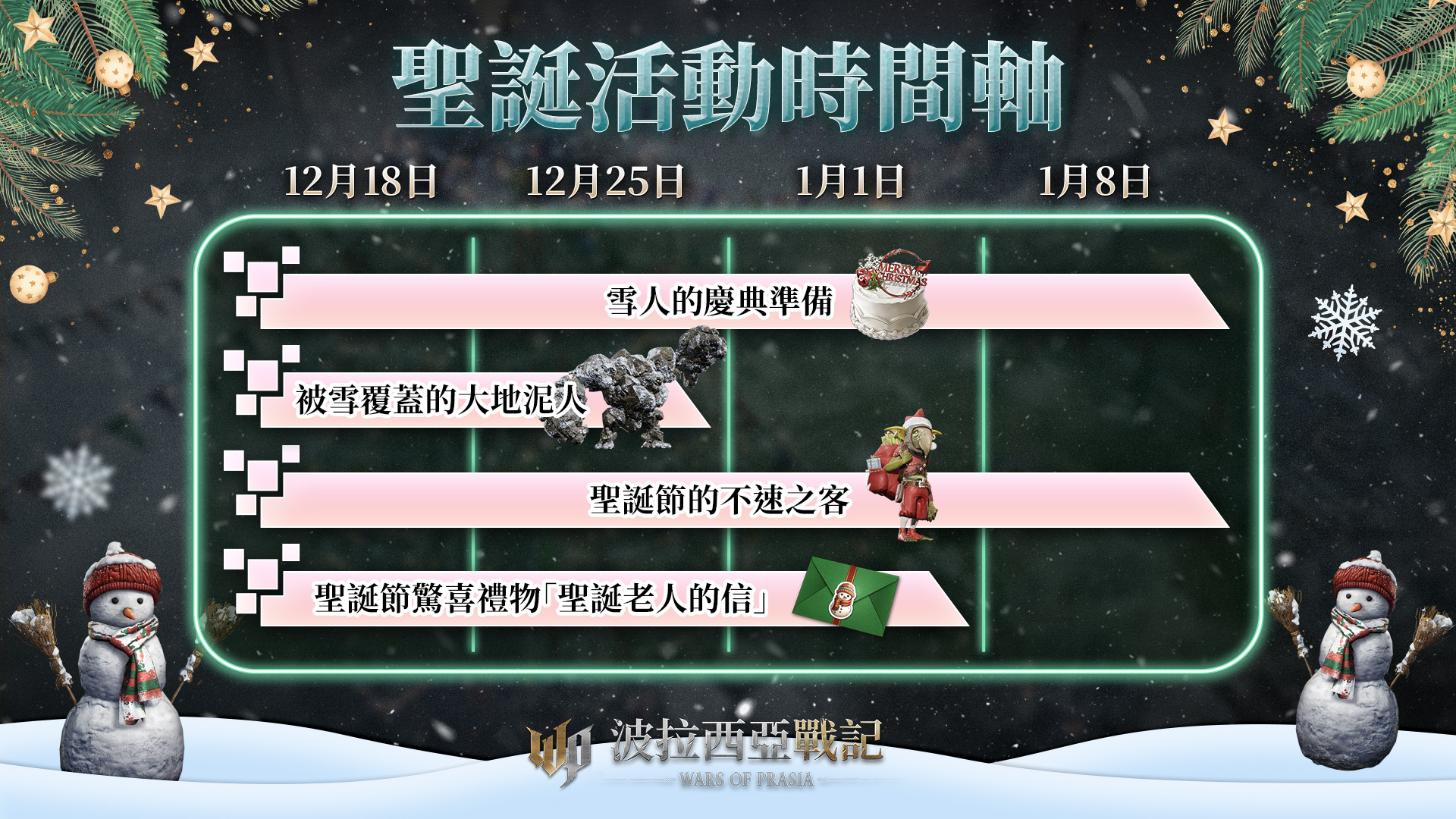 遊戲橘子旗下 MMORPG《波拉西亞戰記》發佈冬季更新,聖誕狂歡季即將席捲黎奈亞大陸,參與期間限定慶典活動贏取獨家聖誕道具,也同步推出八款聖誕限定造型及三種聖誕坐騎。「白夜聖誕奇跡之旅」活動同步開跑,將送出限量遊戲序號,共計 110 抽的造型/坐騎召喚禮物及成長資源。此外,克隆地區亦新增兩位領地首領「暴君塔爾奎」及「酷寒聖德羅斯」,擊殺可得傳說裝備碎片、傳說亞奎殘片,以及新增英雄裝備;第五波領域轉移也將於近期啟動。