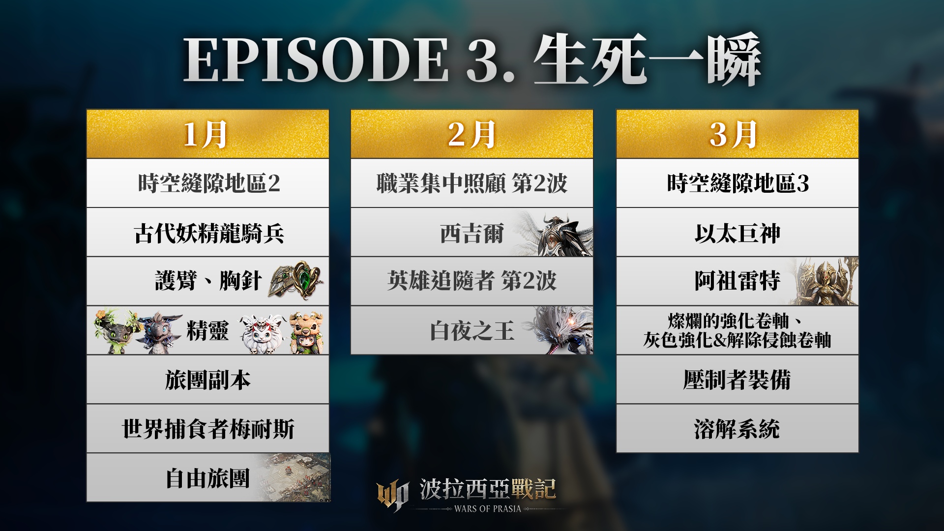《波拉西亞戰記》Episode 3 將為玩家帶來更豐富的遊戲體驗,包括「精靈系統」、時空縫隙全新區域「千年廢墟」、極限燃燒守護者伺服器「斯拉普耶」、全新地區「西吉爾」,以及挑戰極限的旅團副本。