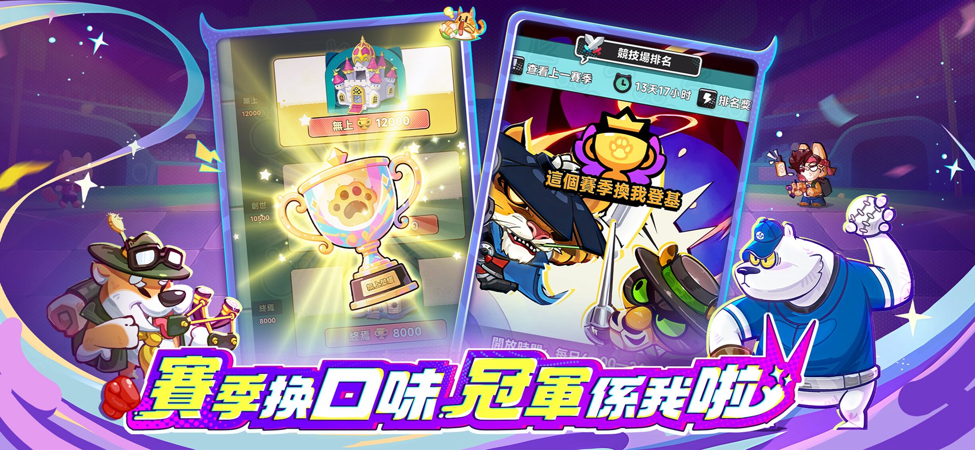 遊戲設置了多個對抗段位,贏得越多積分越高,段位也隨之提升。賽季 21 天更新一次,每一位「園長」大人都有機會可以登上巔峰。遊戲 PVP 採用純策略對抗的遊玩模式,所有人都使用相同的基礎萌獸卡池,然後從中精心挑選 5 隻萌獸組成隊伍,點擊開始對決後匹配對手,透過實時戰術佈局與技能組合搭配一決勝負。獲勝的關鍵圍繞「合成進化的時機」、「陣型克制搭配」與「有回合加成時的選擇」這三大要素。