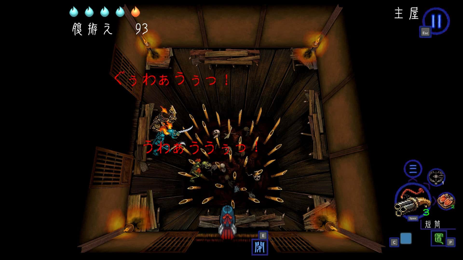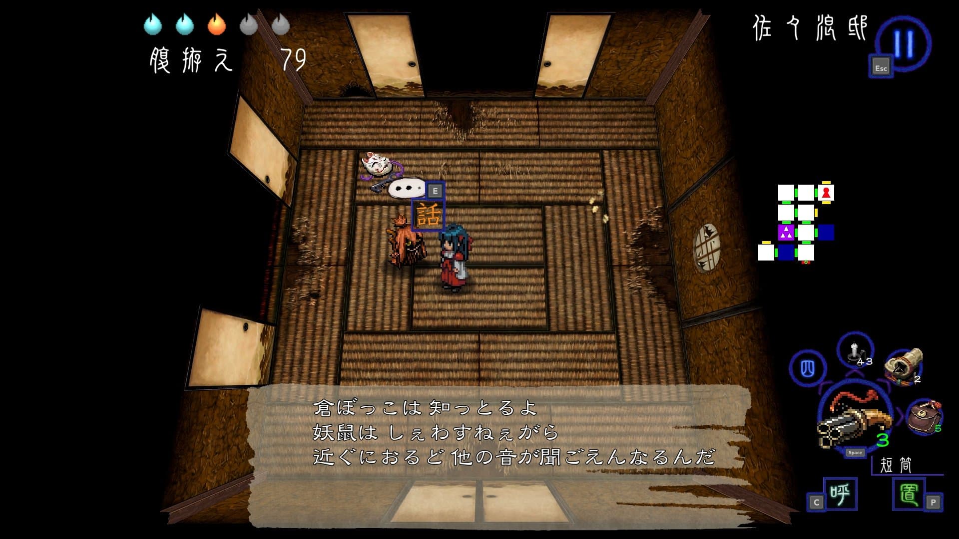 為了在鬼屋中生存,洞察穢物的氣息是很重要的。首先要聽聽隔壁房的聲音,尋找痕跡,確認穢物的種類及數量。「一旦跌入就會一擊斃命的萬丈深淵」、「一碰就會燒傷的地火爐」等,鬼屋中也有很多對四乃來說很危險場所。但是,於四乃而言很危險的地方,對穢物來說也是很危險的陷阱。