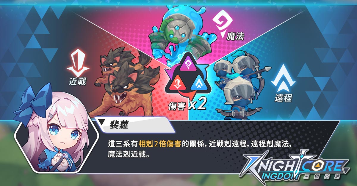 英雄與兵種都有各自的定位,遊戲中分為坦克系、近戰系、遠程系、魔法系、治療系共五種。由於 SLG 策略玩法很講究兵種間的相剋,《王領英雄》也不例外,但是簡化了數量,設計成三角相剋的方式方便玩家記憶。其中近戰系剋制遠程系;遠程系剋制魔法系;魔法系剋制近戰系,能夠對目標造成極高的傷害。至於坦克系與治療系則沒有相剋,主要負責隊伍的防禦、吸收砲火以及治療等工作。