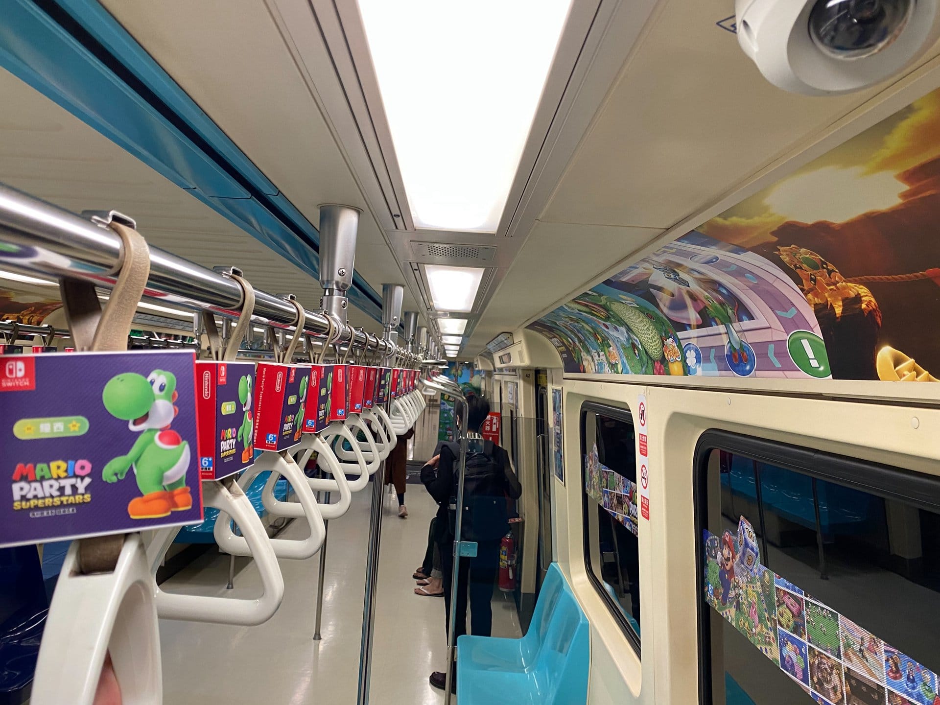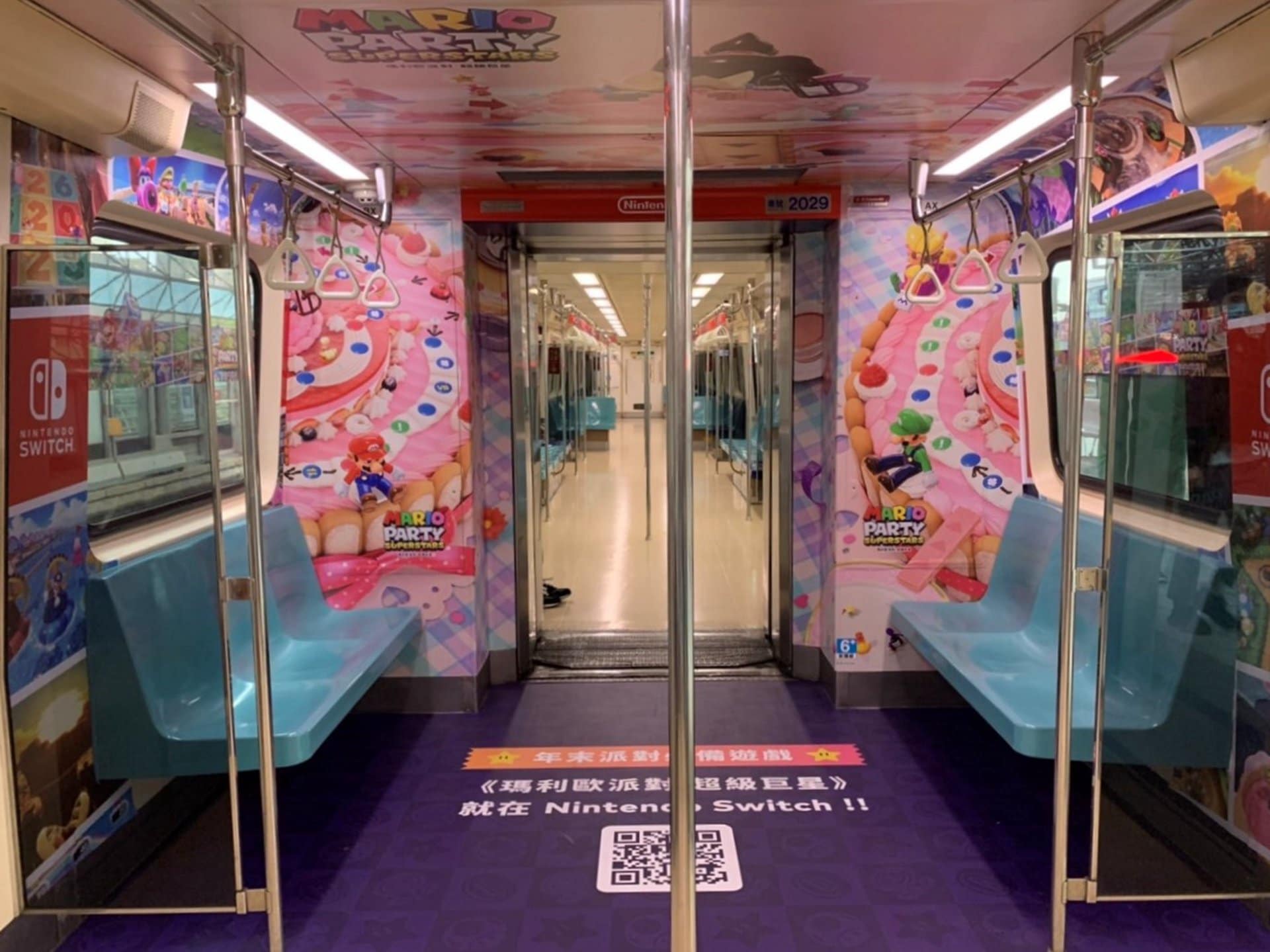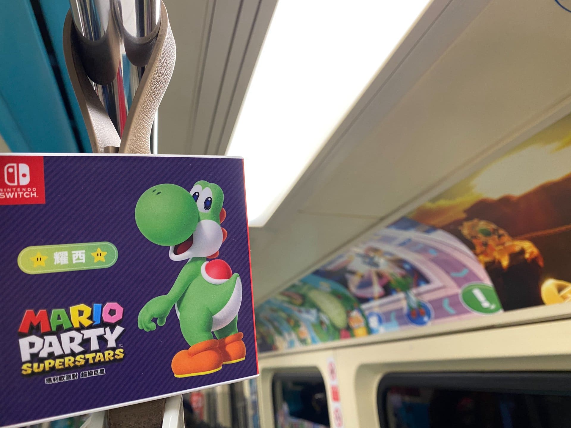 自即日起到 2022 年 1 月 4 日,將可在捷運淡水信義線、松山新店線搭乘到 Mario Party Superstars《瑪利歐派對 超級巨星》的主題列車。除了在車廂能上方看到歷代的「瑪利歐派對」系列中嚴選出 100 個小遊戲的部分遊戲畫面外,每一節車廂的吊環,也都裝飾上不同的遊戲角色。從瑪利歐、路易吉、碧姬公主、奇諾比奧、瓦利歐以及可愛的耀西都在捷運車廂中登場。