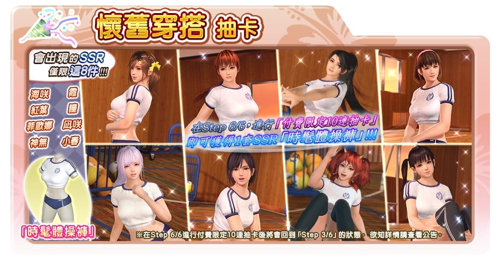 於「星星穿搭抽卡」進行 10 連抽卡可額外獲得 10 個「玲夏星星」,只要收集 200 個「玲夏星星」就可以兌換 1 套玲夏専用的新 SSR 泳裝「破風疾行」。