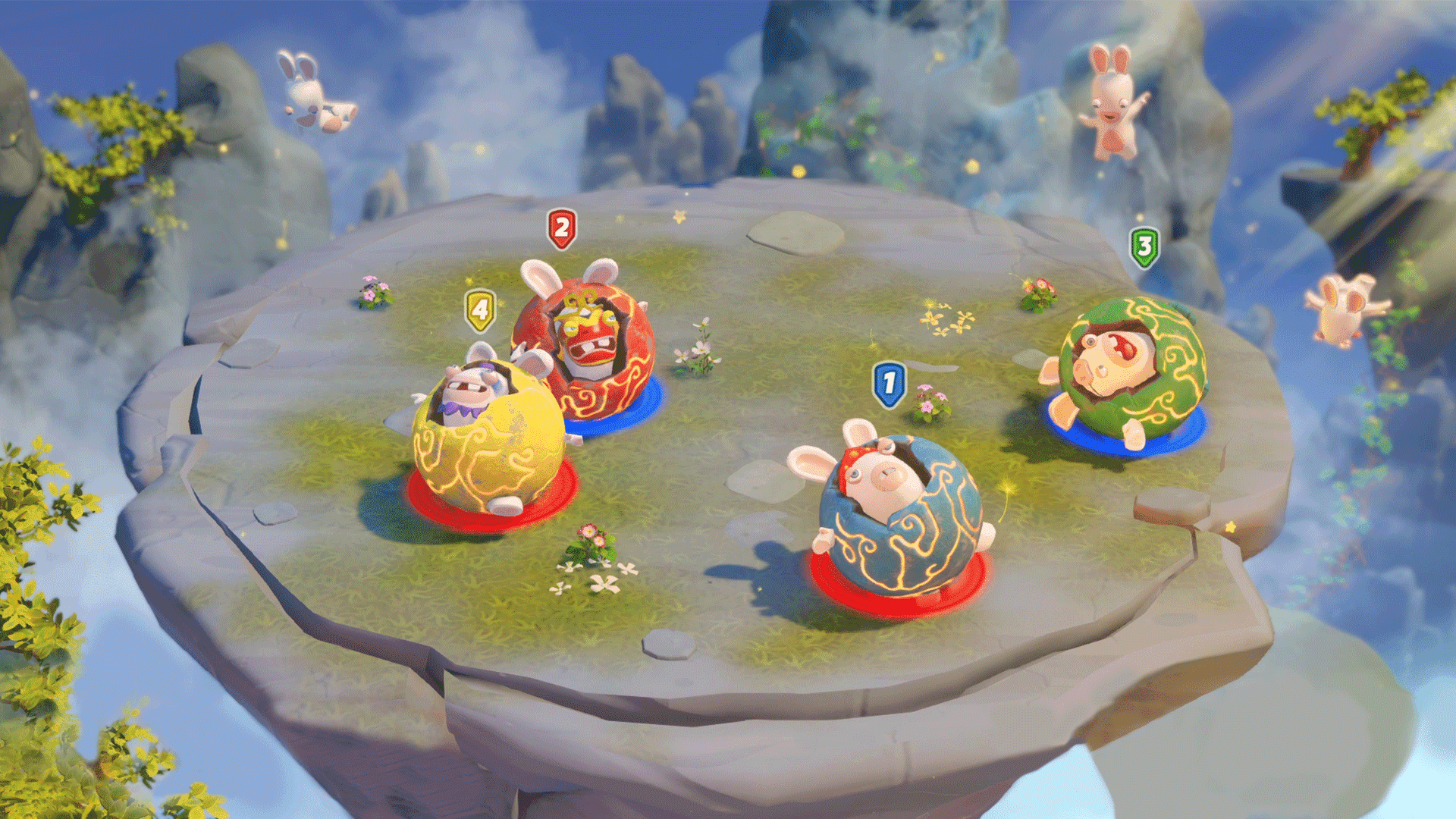 遊戲故事分為四個章節,每個章節會在遊戲盤的不同區域上演,並帶玩家一遊神話世界。孫悟空與師弟豬八戒、沙悟淨,以及師父唐三藏必須原路折返好將他們自己和其他瘋狂兔子送回家。