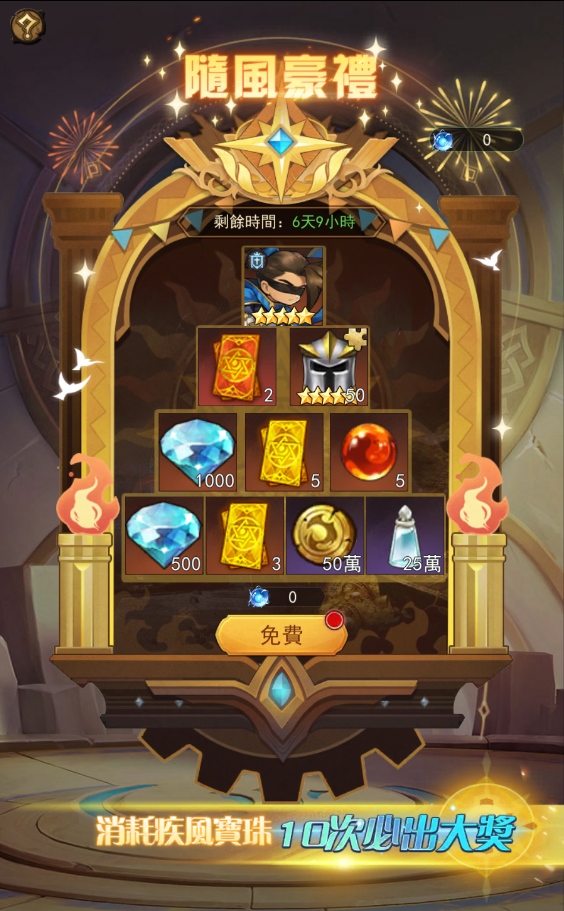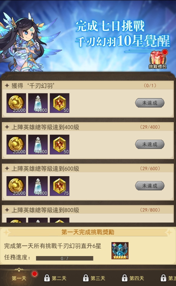 開服 8 天內,累計登入即可獲得最多 2 隻超神英雄「九尾天狐」,另有高級英雄卡、部落英雄卡、隨機紅色裝備寶箱、一萬鑽石等稀有虛寶。開服 7 日內,每天可解鎖對應的任務,完成七日挑戰所有任務後,不僅可以免費領取超神輸出英雄「聽風劍豪」,還能獲得大量英雄升級資源,前期便能輕鬆擊敗大 BOSS。