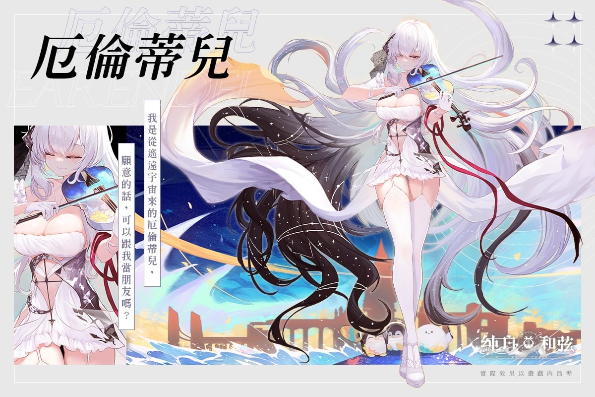 同為星星精神體的四名歌姬「厄倫蒂兒」、「涅默」、「埃穆亞」及「熙歌」,這次不僅化身為「樂姬」與指揮官一同戰鬥,更準備在維爾蘭德大陸舉辦史上第一場宇宙級演唱會,絕對無法想像的跨宇宙聯動合作即將在 3 月 30 日正式啟動。
