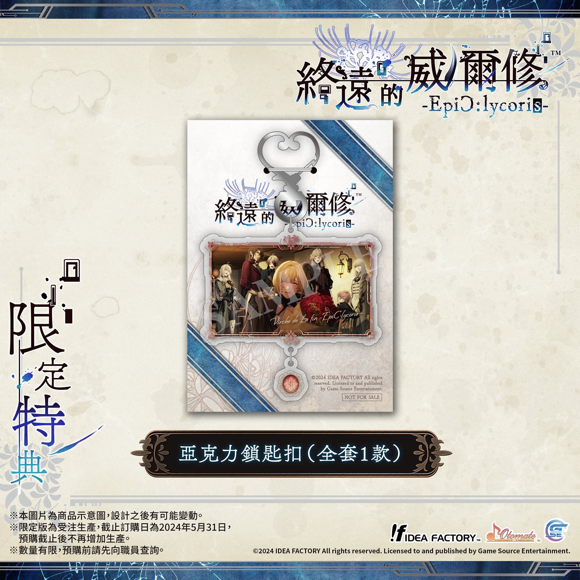 GSE 宣佈,與日本遊戲公司「Idea Factory」旗下的乙女遊戲品牌「Otomate」合作,預定於 2024 年 7 月 25 日推出乙女遊戲《終遠的威爾修 ErroR:salvation》的 Fandisc《終遠的威爾修 EpiC:lycoris》Nintendo Switch 亞洲繁體中文版本公開《終遠的威爾修-EpiC:lycoris-》的預購、限定版及店家通路的特典情報。本作除了收錄本篇故事的後日談外,還有各種短篇故事集、「死神少女」與「死亡看守人安庫」的故事等,總共五段全新物語。