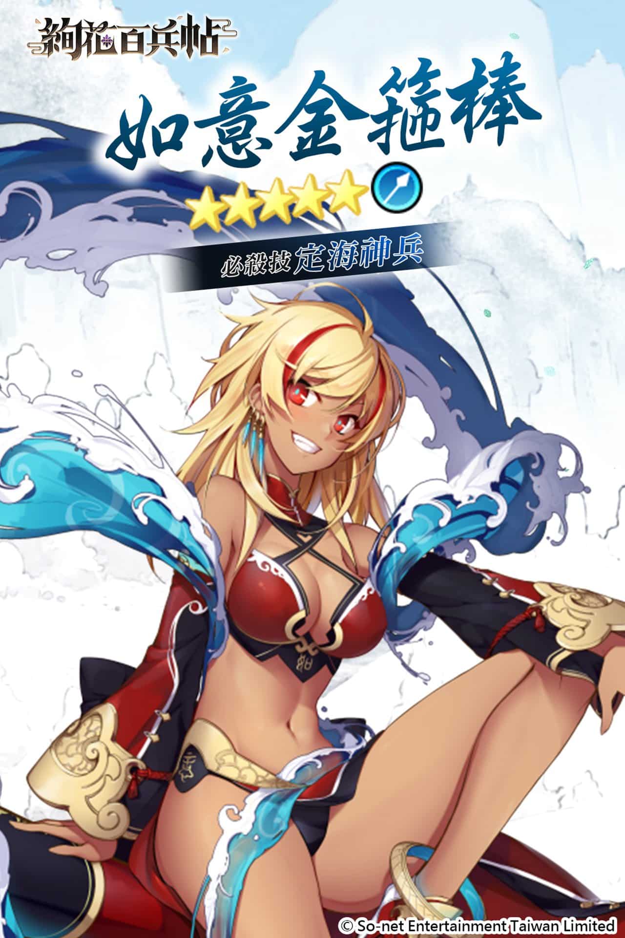 西遊記赫赫有名的「如意金箍棒」也將接棒登場。繼承主人孫悟空放浪不羈的性格,一副船到橋頭自然直的樣子,對任何事都能自由自在的隨興應對。該角色為水屬性五星長兵器劍姬,將可為鑄劍師展現強大的戰力,擊潰所有難關與敵人。