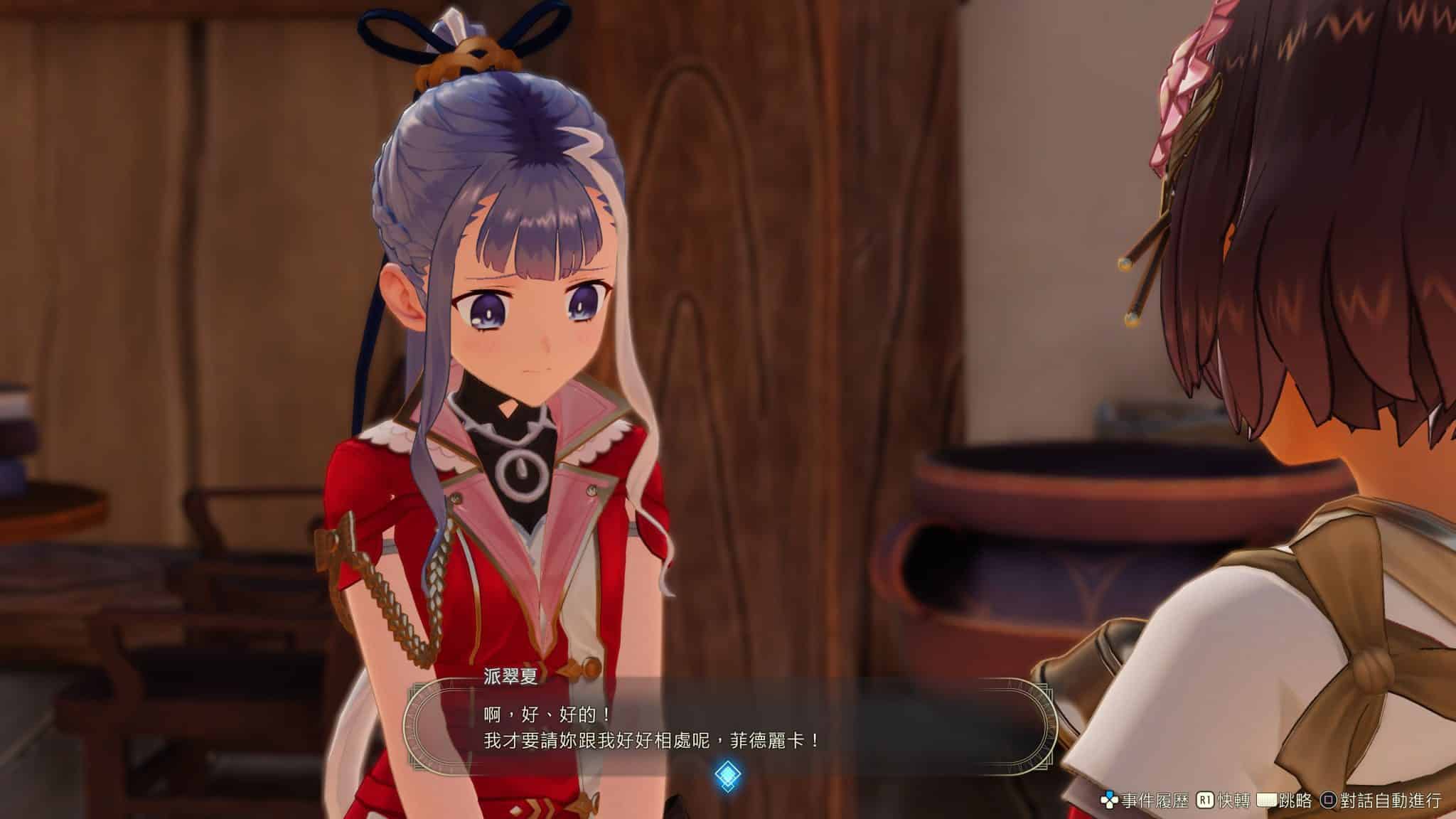 在萊莎一行人的努力下,安佩爾及莉拉受到釋放。熟悉的夥伴莉拉、安佩爾、派翠夏加入冒險隊伍,旅途也變得更熱鬧。年齡相近的菲德麗卡及派翠夏。兩人都是名門千金,彼此之間還有點尷尬,無法適應不用敬語交談,可能需要花點時間才能打破隔閡,但她們已經踏出作為「朋友」的第一步。