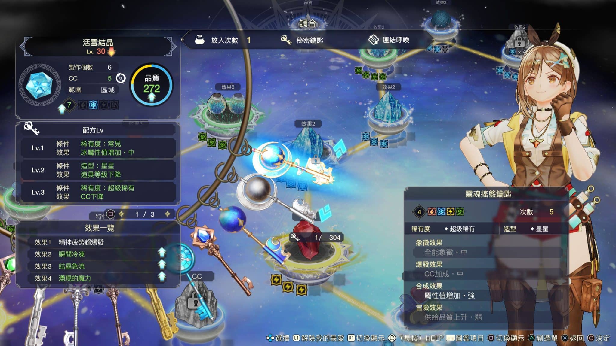 使用進化後的調合系統製作更強力的道具,調合為將材料投入格子的系統。本作中可以使用鑰匙及連結呼喚,製作出更優質的道具,此外,從材料中繼承比一般特性更強的「超特性」的話,就能調合出性能更好的道具。
