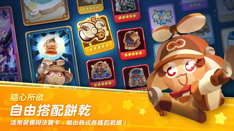 遊戲內也推出了可以提升餅乾能力值的法寶卡及裝備。上線時將公開包含洋甘菊餅乾、大蕉餅乾、奶油蘇打餅乾等在內共 20 種的原創新角色,以及 32 種法寶卡。所有完成事前預約的玩家都將可獲得 3000 水晶、《薑餅人之塔》首次亮相的原創餅乾「洋甘菊餅乾」、2 張討伐戰入場兌換券、2 個愛心果凍補充藥水、10 張基本餅乾扭蛋券、10 張基本法寶卡扭蛋券,以及限量表情圖案等獎勵。