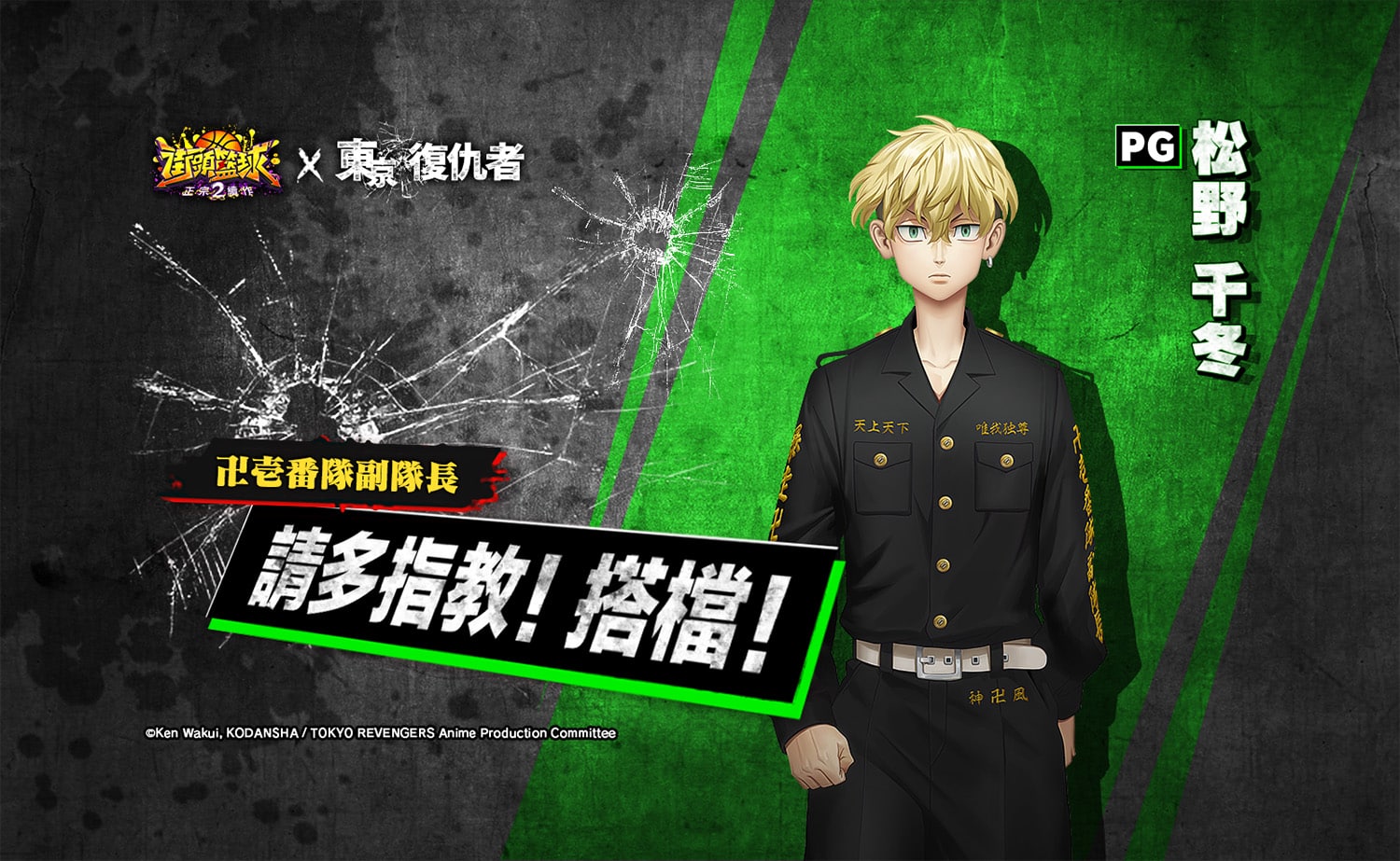3V3 真實籃球競技遊戲《街頭籃球 2:正宗續作》宣布,將推出與動漫畫作品《東京復仇者》的第二彈合作。推出全新球員角色「場地圭介」、「松野千冬」、「柴大壽」,期間除了每日登入簽到活動,還有超值福利優惠的幸運一擊等活動,都將同步登場。