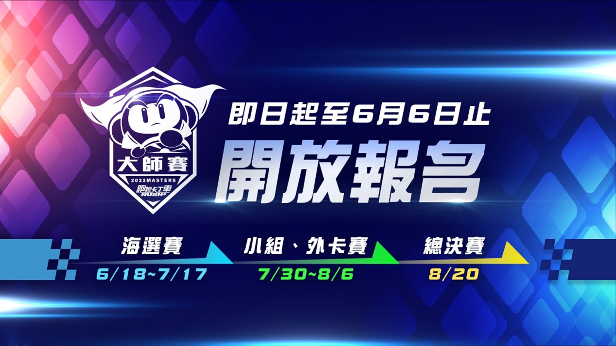 NEXON 旗下手機競速遊戲《跑跑卡丁車 RUSH+》宣布即日起開始進行年度重點賽事《跑跑卡丁車 RUSH+》2022 大師賽的報名,邀請所有玩家齊聚賽道角逐大師之路最高榮譽。本次賽事進行時間橫跨 6 月至 8 月舉辦,在此期間 NEXON 將與各家知名品牌,如 MOMO 購物網、技嘉 AORUS 電競品牌、DXRacer 迪銳克斯電競椅、還有由聯強國際獨家代理的 SteelSeries 賽睿以及台灣安全帽品牌 SOL HELMETS 共襄盛舉打造電競大賽。
