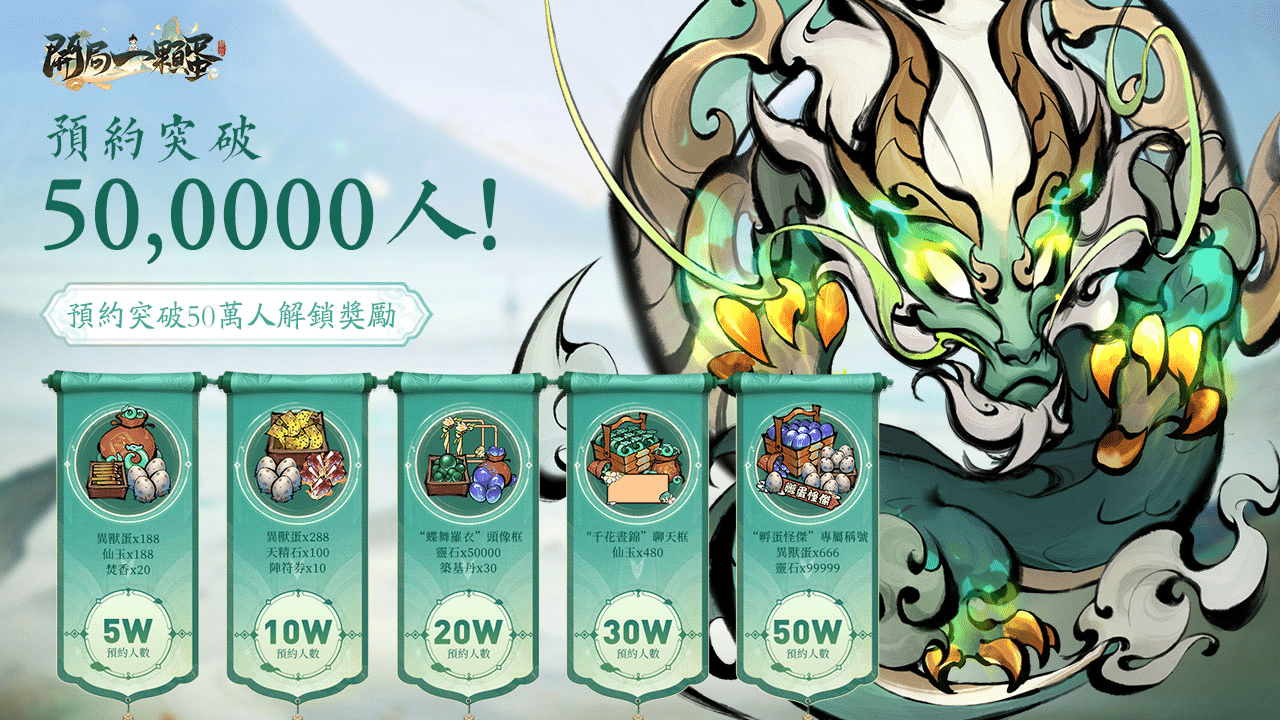 開始營運的《開局一顆蛋》是一款以山海經為背景的孵蛋修仙手遊,夢回古老神話,徜徉山海間,玩家將扮演命運之子,踏上一段開啟仙道的修行之旅,與之遙相呼應的是修仙奇遇和並肩作戰的道友,在潺潺溪水和松濤之間,攜手雲遊仙境,續寫山海傳奇;更有百幅精美水墨異獸原繪帶領一窺神祗異獸的奇幻相貌,一品異界修仙的暢快體驗。
