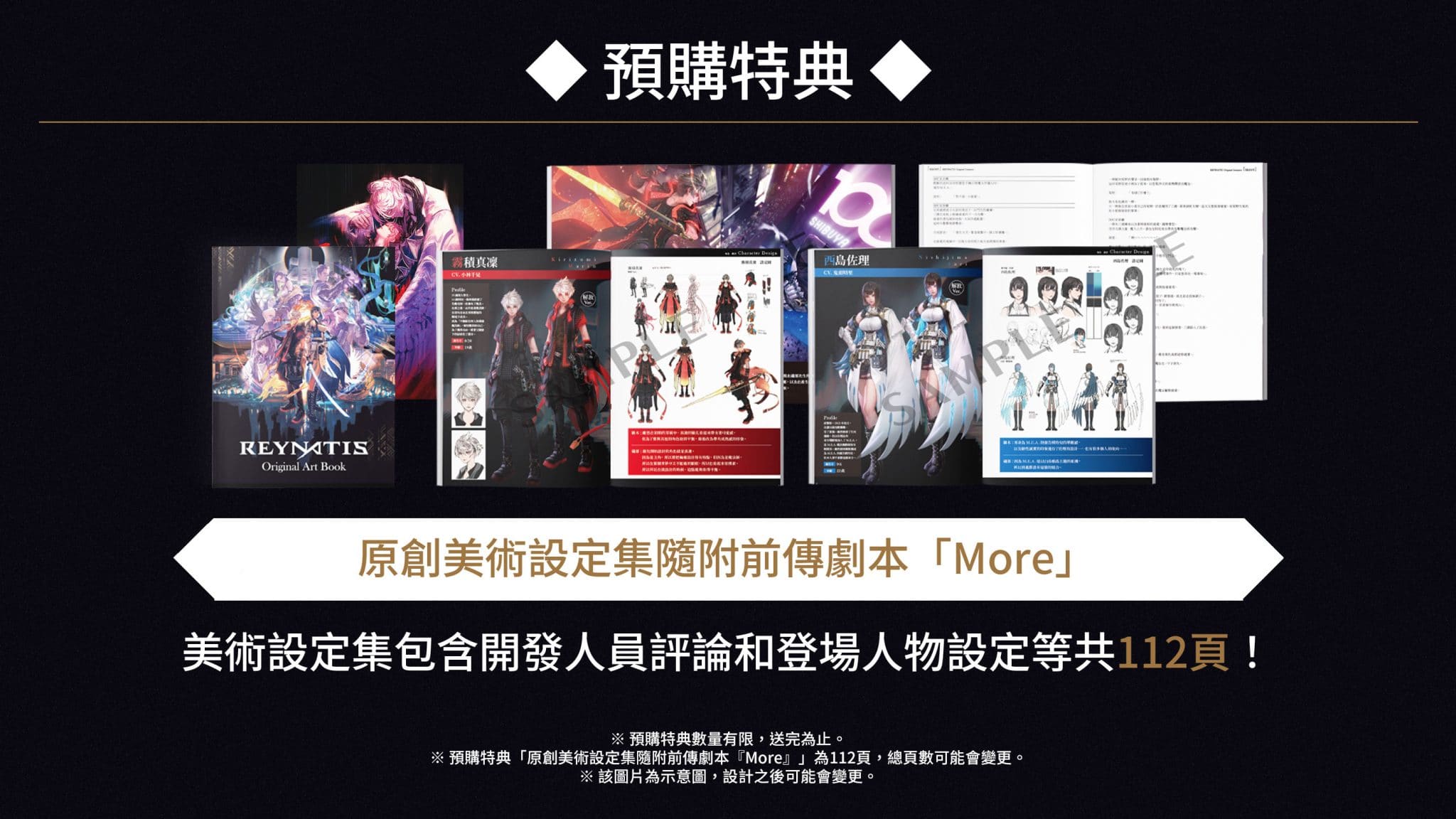 PlayStation 5、Nintendo Switch《雷納提斯》繁體中文實體版目前正於各遊戲店家的實體及網路商店進行預售。預購特典將送出限量「原創美術設定集隨附前傳劇本『More』」。購買《雷納提斯》繁體中文版,上市同時可以免費下載包含真凜及佐理的禮服服裝與經驗值配件以及由其他 FURYU 遊戲聯名的巫藝所組成的「特典 DLC(五款組)」,除此之外,亞洲版限定的真凜及佐理的特殊色禮服也包含在內。具體發布時間和詳細規格將在日後公開。