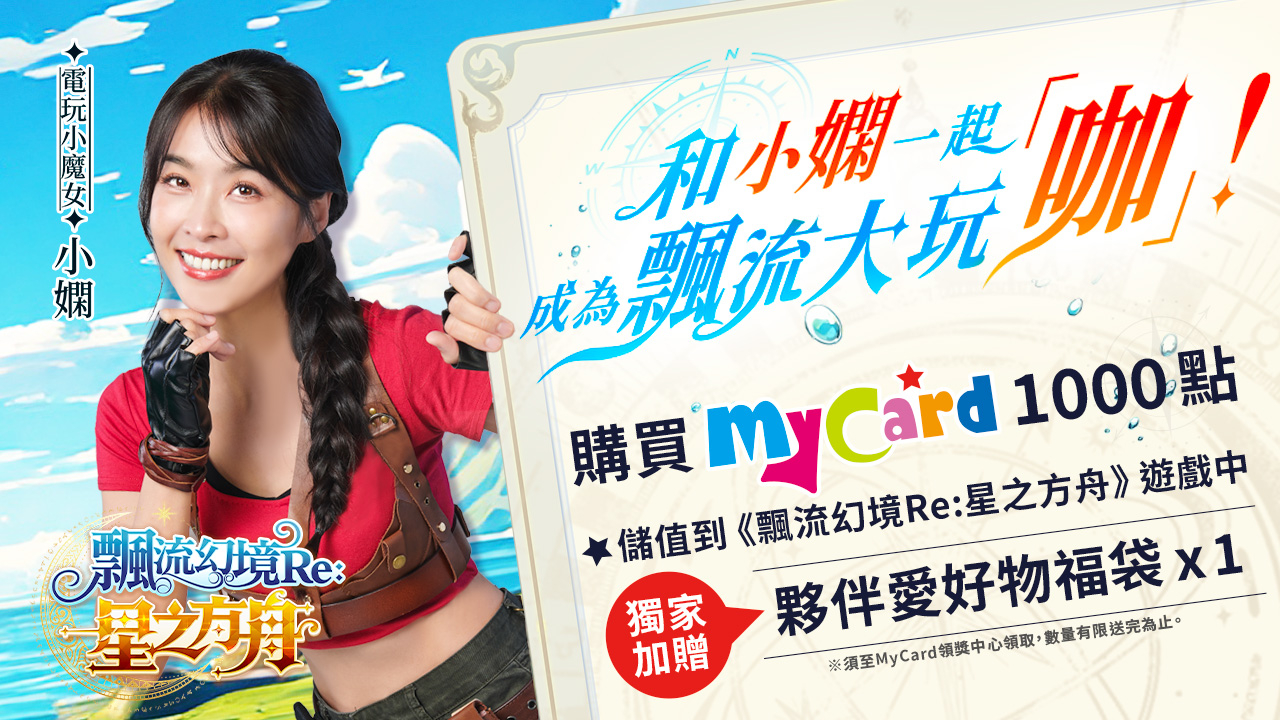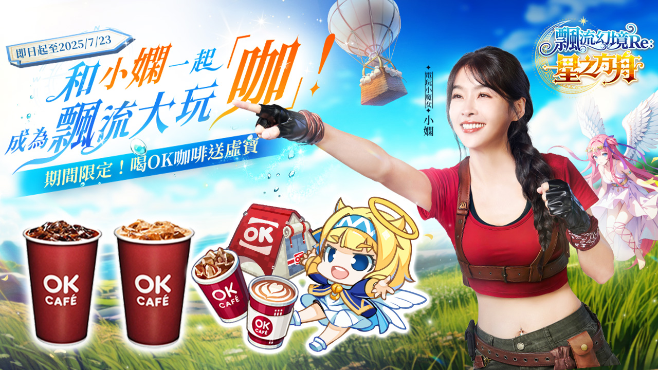 即日起至 7 月 23 日期間至全台 OK 實體門市消費 OK café 可獲得《飄流幻境 Re:星之方舟》「OK 超商聯名福袋」限量虛寶序號;有機會抽中獨家造型帳篷、各式補品道具、潛能激發丸、混沌結晶等虛寶。除此之外,凡期間於 OK 超商購買 MyCard 指定面額,並成功儲進遊戲中,可至 MyCard 領獎中心兌換獨家加贈「夥伴愛好物福袋」。