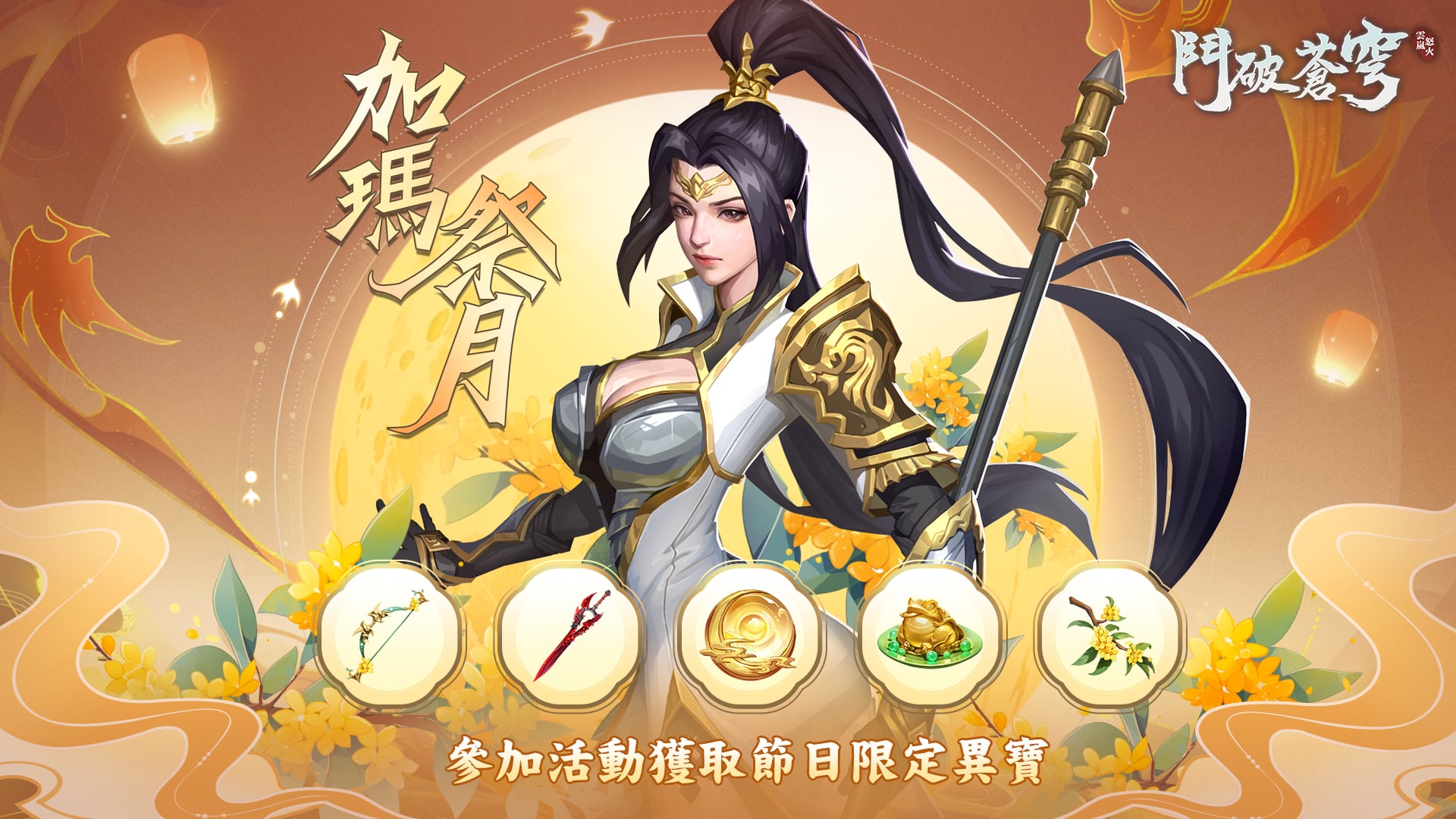 《鬥破蒼穹:怒火雲嵐》於今(27)日釋出中秋專屬活動「加瑪祭月」,除了登入獎勵,完成任務還有專屬禮品。另外還有限時活動讓玩家領取獎勵。遊戲更新後,至至 10 月 4 日期間,將上線中秋佳節線上活動「加瑪祭月」讓玩家能愉快度過中秋節。