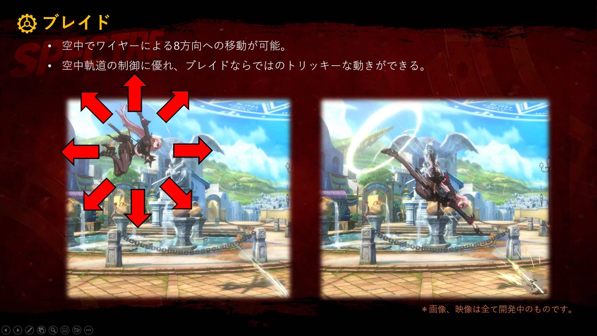 比照原本的線上遊戲版本,這位女鬼劍士將以大太刀與小太刀兩種武器應戰,並且使用拔刀術進行又長又廣的範圍攻擊。另外會利用鋼絲在空中進行 8 個方向的自由行動,擁有相當強的機動力,對玩過原作的玩家來說,應該是能相當滿意其重現度的角色。