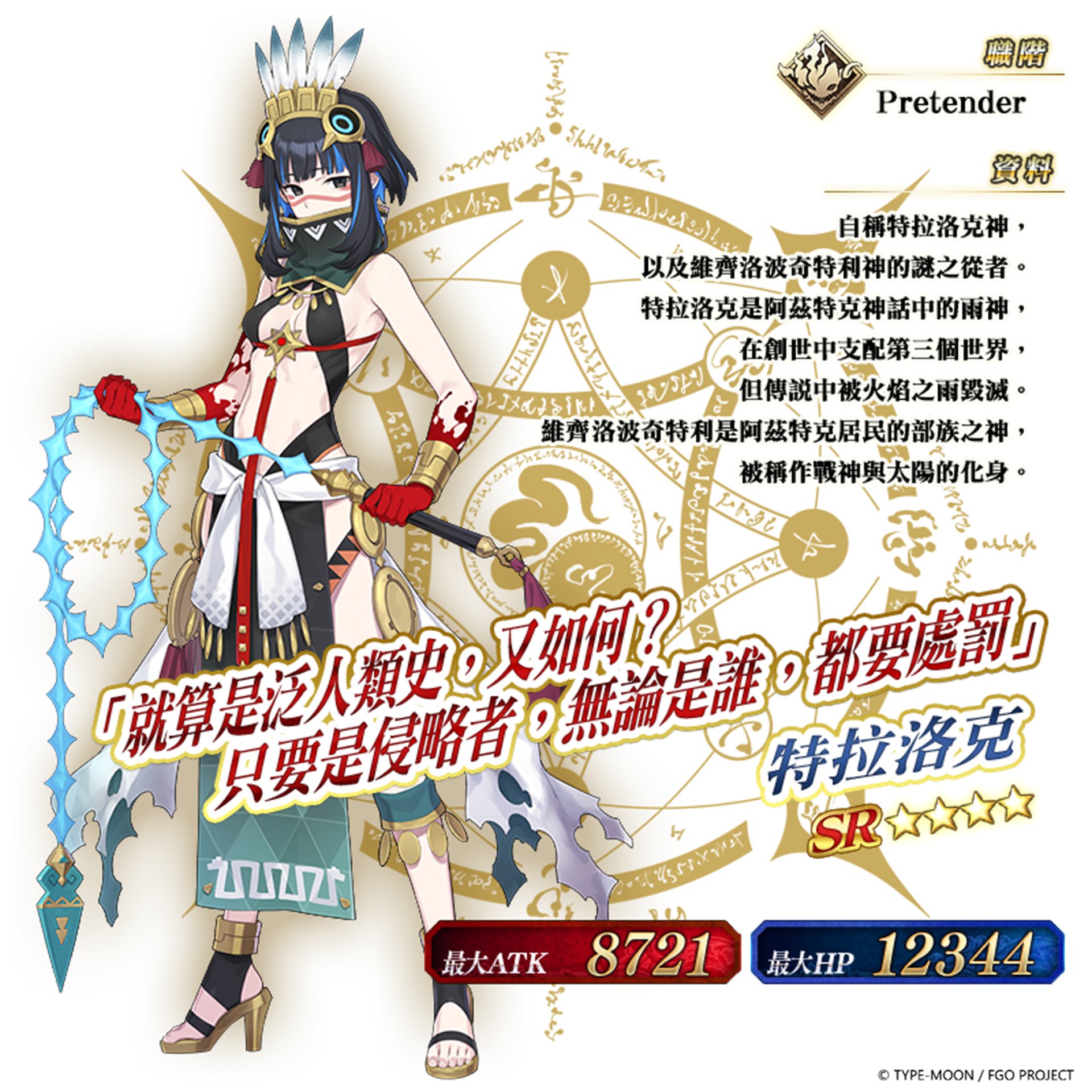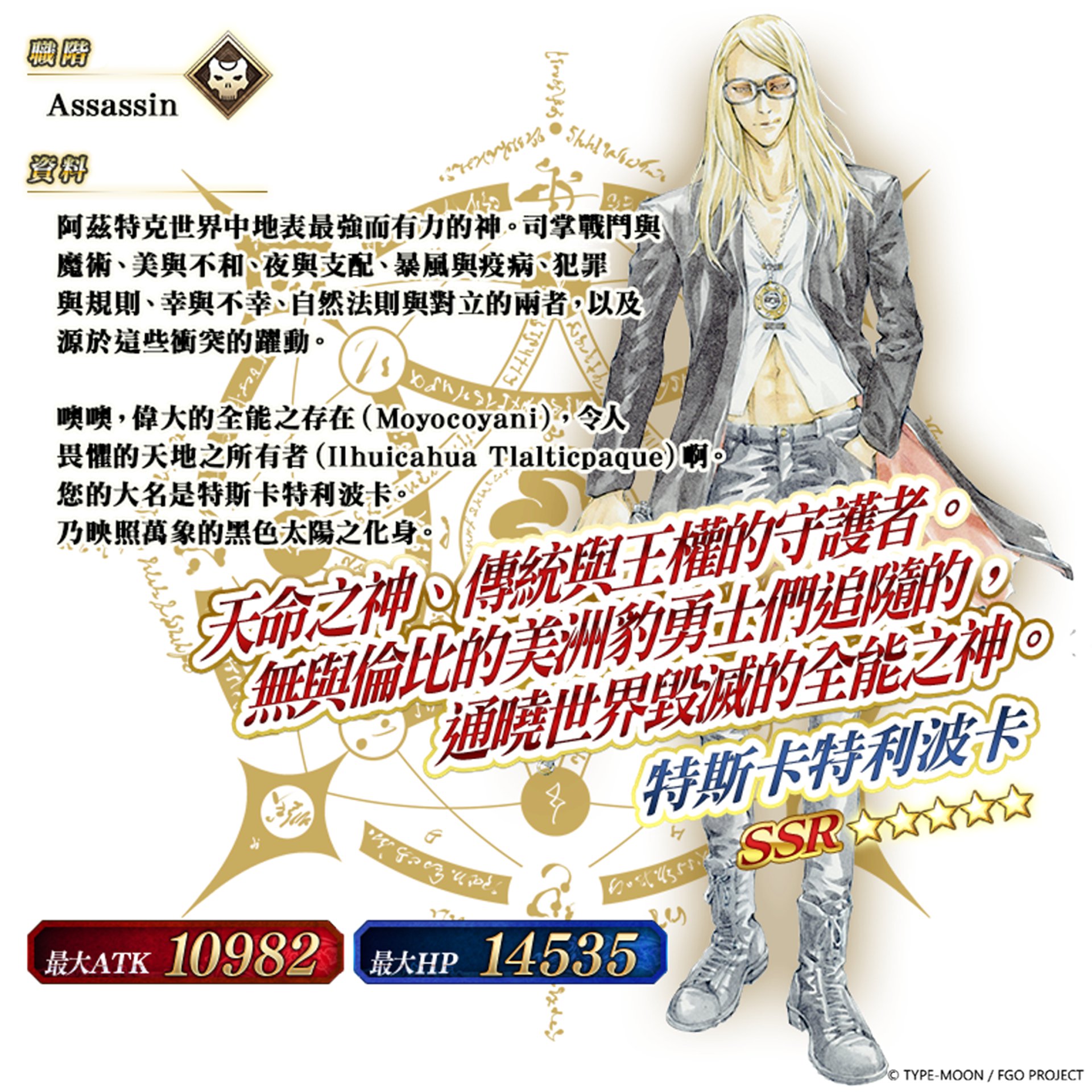 手遊《Fate/Grand Order》繁中版開放主線劇情第 2 部第 7 章「Lostbelt No.7 黃金樹海紀行 太陽紀・米克特蘭 統領行星之物」(後篇),並實裝「★5(SSR)特斯卡特利波卡」及「★4(SR)特拉洛克」2 騎全新從者、及 4 種全新概念禮裝。同日,將常駐追加「進階任務第 13 彈」,也預告即將開放的「巡靈的祝祭第 1 彈」PICK UP 召喚 2。