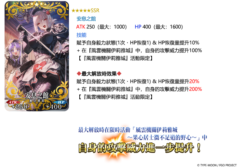 手遊《Fate/Grand Order》繁中版,舉辦全新活動「風雲機關伊莉雅城 果心居士微不足道的野心」,並實裝全新從者「★5(SSR)果心居士」。