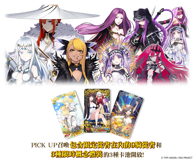 開放包含新登場從者「★5(SSR)美杜莎〔Saber〕」,以及「★5(SSR)嘔心瀝血」、「★4(SR)太陽之花」及「★3(R)擱置」等 3 種限時概念禮裝召喚卡池。御主們裝備上述 3 種限時概念禮裝通過本次限時活動,不僅將被賦予概念禮裝既有的強化效果,亦可獲得「自身攻擊威力提升」的效果。