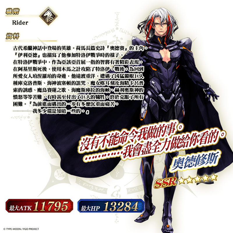 手遊《Fate/Grand Order》繁中版舉辦限時活動「BATTLE IN NEWYORK 2024 太空‧奧德修斯對尼古拉・特斯拉」。賭上最強寶座的武之祭典終於復活,但意料之外的宇宙從者軍團亂入,銀河規模的武鬥大會趨於白熱化。同時還開放了「BATTLE IN NEWYORK 2024 PICK UP 召喚」,活躍於「BATTLE IN NEWYORK 2024」的 2 騎從者「★5(SSR)奧德修斯」以及「★5(SSR)尼古拉・特斯拉」都將加入限時 PICK UP 的行列。