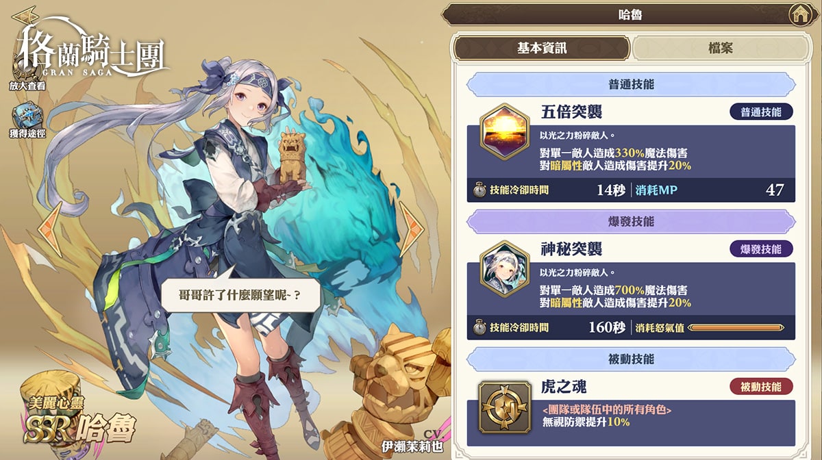 哈魯:奧爾塔專屬新春 SSR 格蘭武器,爆發技能可對敵方單體造成超大量魔法傷害,若敵方為暗屬性,傷害將額外提升,是奧爾塔截止目前可造成最高的單體傷害的 SSR 格蘭武器,幫助奧爾塔在單體爆發上能夠快速終結敵人,同時被動技能可以增加隊伍的防禦無視效果,可以有效提升 PVP 的隊伍強度。