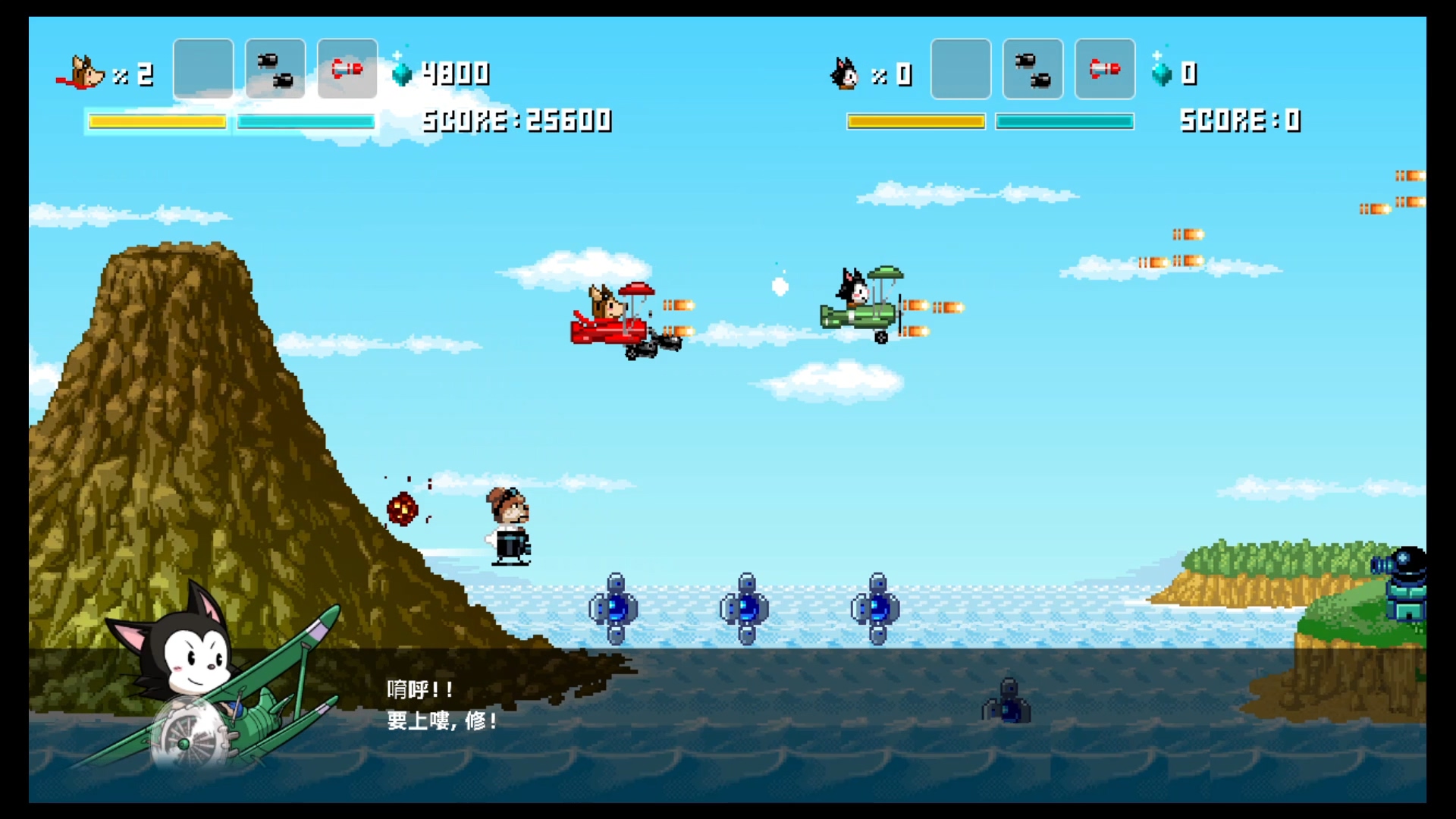 在兼具正統遊戲設計和戰略性的射擊部分中,玩家可以遊玩 8 種以上的關卡並能遇到多種個性十足的角色。飛行員除了可以遊玩一般模式的主角「修」之外,也可以遊玩連初學者都能輕鬆上手的初學者模式「費加洛」。
