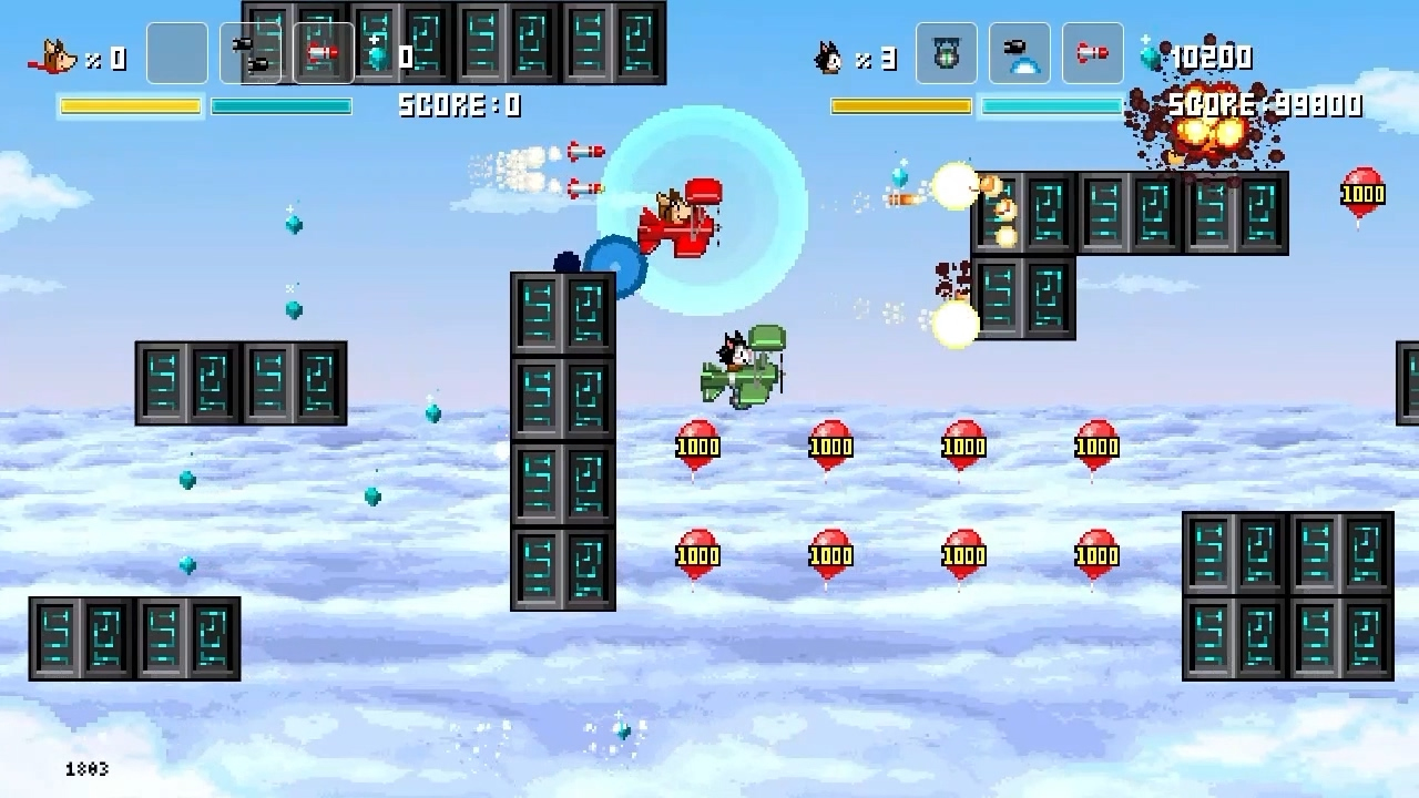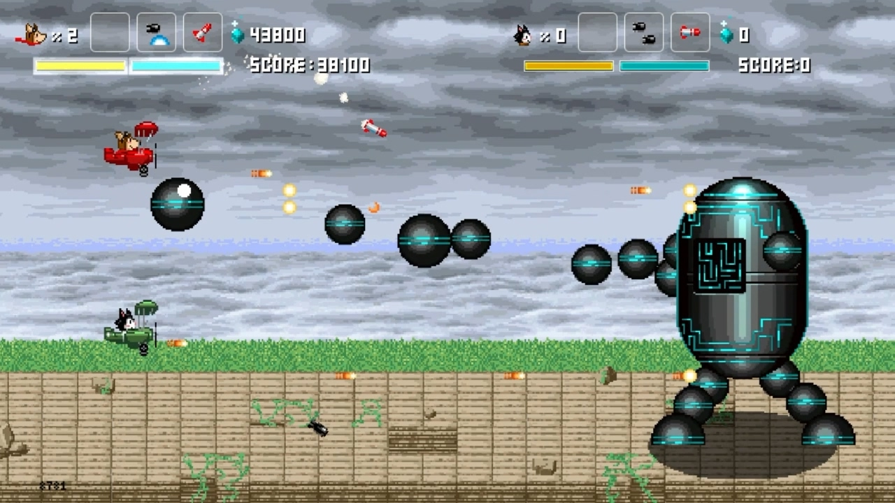 玩家不僅可以遊玩正統設計的射擊,更可以利用 Nintendo Switch 版的新模式「艾特蒂」幫忙復興在戰爭中受損的城市,還能獲得遊戲進行所需的道具。由曾參與《GRADIUS 2》、《A-JAX》等的遊戲音樂作曲家「古川元亮」負責的樂曲,和以繪製《桑塔》系列著稱的插畫家「KOU」所繪製的插圖與角色所展現出獨特世界裡,與「修」和「費加洛」一起,徜徉在可愛擬人化的動物們為了和平活躍的飛行員世界。
