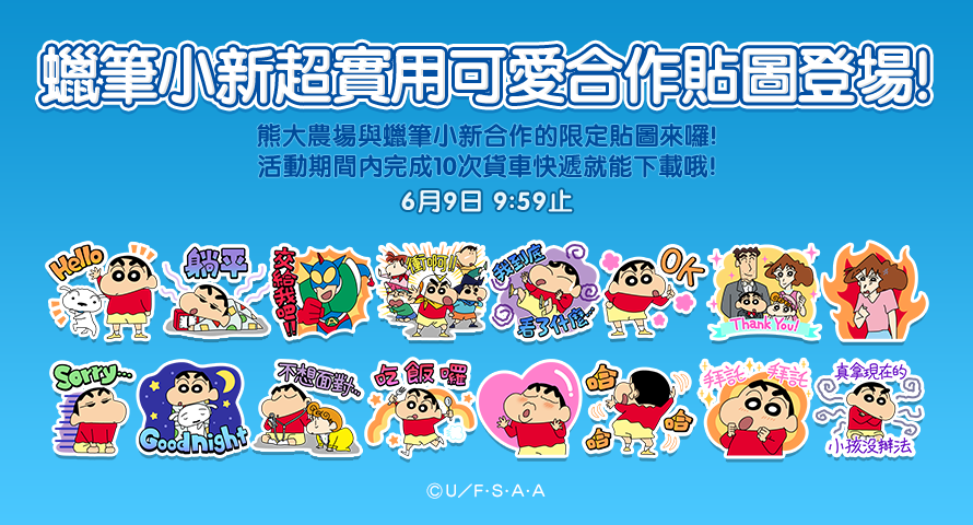 LINE GAME 旗下農場手機遊戲《LINE 熊大農場》宣布與《蠟筆小新》自今(10)日起到 6 月 9 日展開第二彈合作。這次小新和野原家與春日部防衛隊們將穿著來自世界各地的特色服裝出現在遊戲裡,合作期間除了有各種限定的角色小夥伴與原創裝飾之外,還將推出任務貼圖活動,玩家只要在活動期間內完成指定的遊戲任務,即可免費下載 16 張可愛貼圖。
