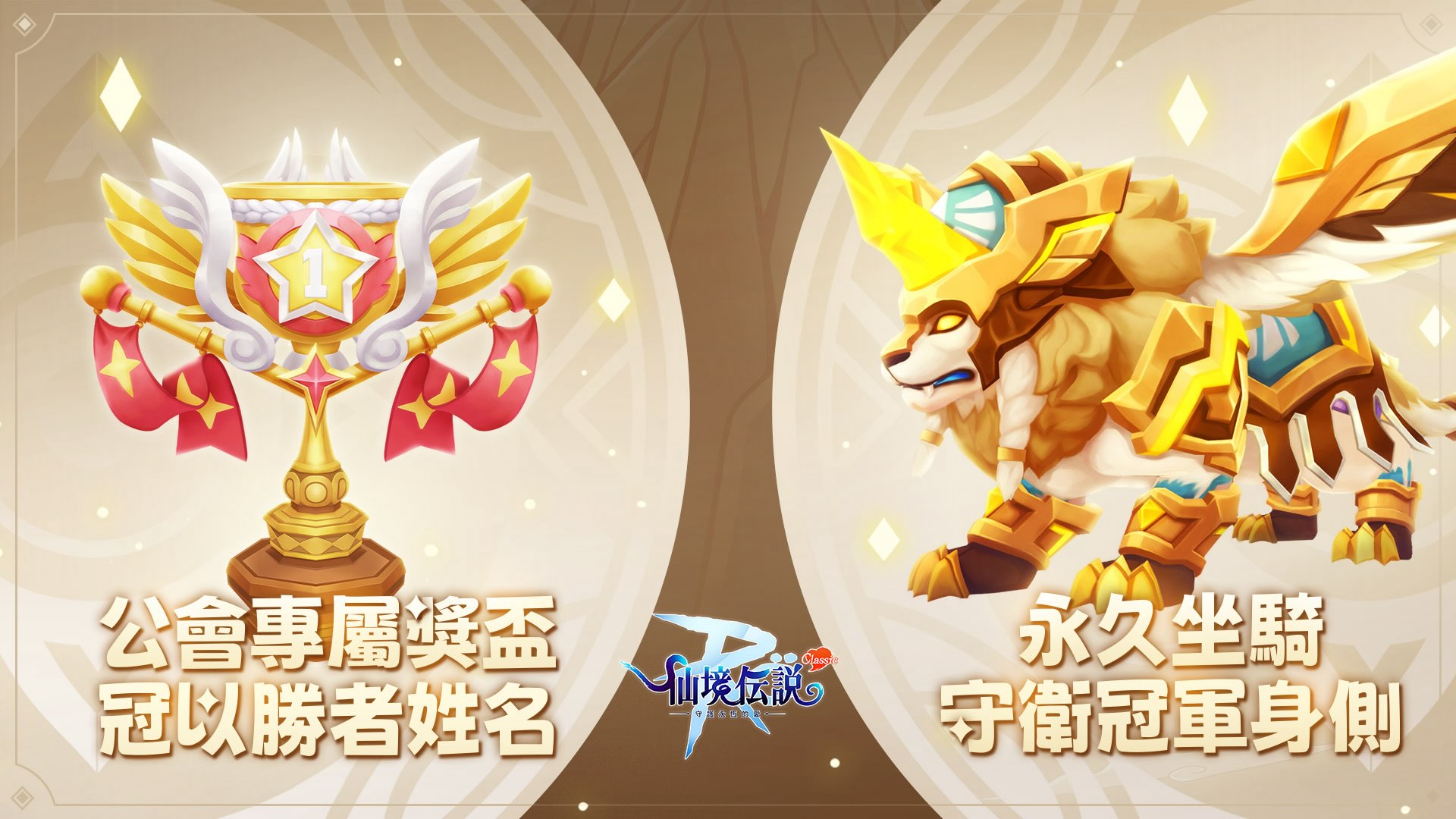 GVG S1 賽季 S1 賽季將於 6 月 5 日 21:00 正式開打,賽季為期六週,將取公會最高四場戰績累積分數進行排名。隨賽季開啟,所有城池、巔峰分組、公會料理與裝備資料將全面重置。賽季獎勵更包含限定坐騎與賽季獎盃,唯有在最後一週前加入公會的冒險者才具領取資格。