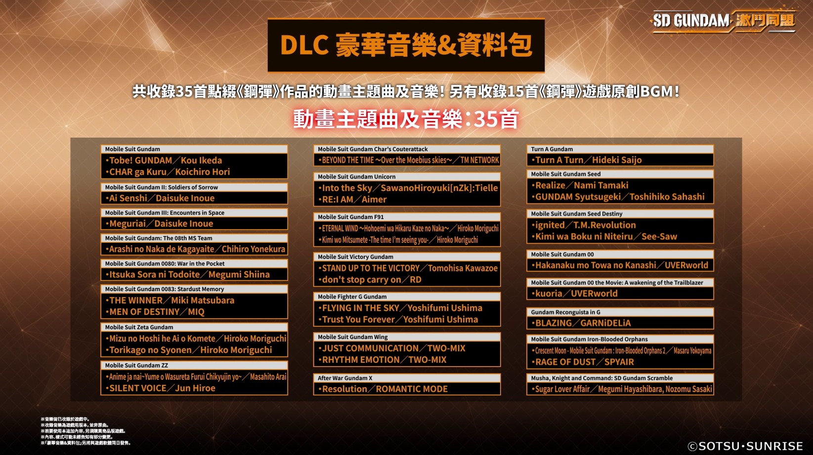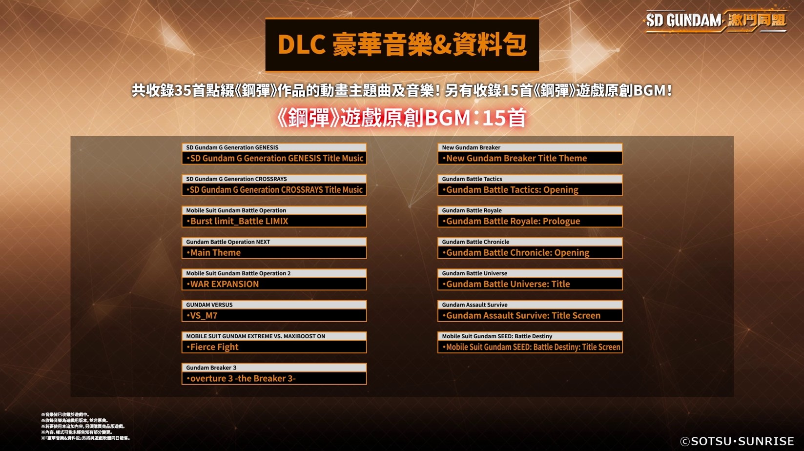 《SD GUNDAM 激鬥同盟》豪華音樂&資料包內容: