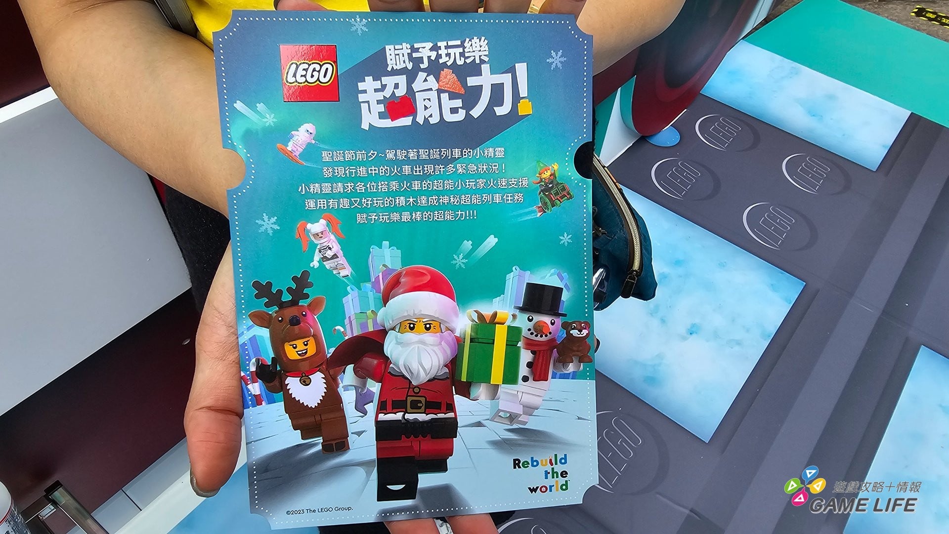 闖關體驗內容邀請大小朋友化身聖誕小精靈,創造各項超能力法寶,勇闖三大關卡完成神秘任務。登上超能列車開啟闖關挑戰,「樂高火車站」出發,完成駕訓考題,獲得超能力法寶變身成為超能列車長駕駛列車順利出發;行駛至磁場混亂的「魔幻雪山站」施展磁吸超能力,收回遺失的聖誕禮物;抵達終點站「聖誕冰屋站」拼砌闖關限定「樂高聖誕吊飾」,現場更首度設置「樂高超能變身體驗」拍照亭,拍下獨一無二的樂高聖誕濾鏡照。