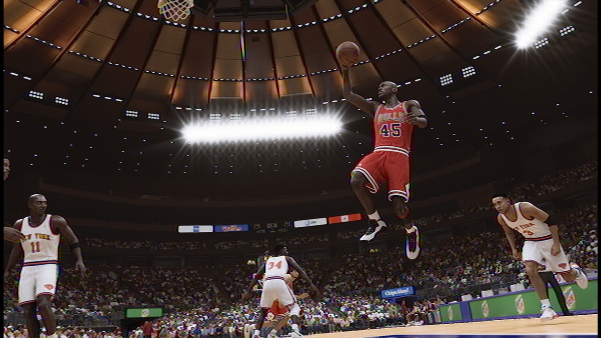 ● 用手干擾和猛烈的身體接觸為一對一單挑帶來截然不同的感受,精確重現了 90 年代籃球的風格。例如 Jordan 與「壞小子」Pistons 對戰時,或許最能深刻體驗老派籃球賽的摩擦與肢體衝撞。Pistons 可能會使出知名防守策略「Jordan 法則」來圍堵 MJ。