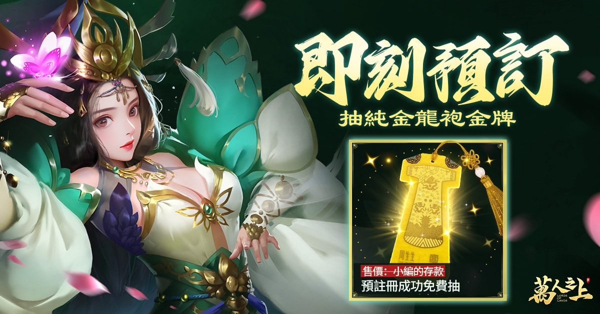 由共和國科技代理發行的全新軍政策略手遊《萬人之上》宣佈,開啟事前登錄及雙平台預註冊,本作主打 3D 引擎開發,無縫大地圖、武將絕技、實時操作、多線作戰。現在參與事前登錄活動,遊戲上線首日可獲高達 950 免費抽。