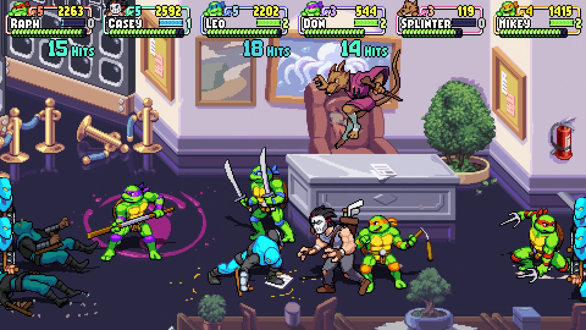 享受令人讚嘆的全彩像素藝術風格和《忍者龜》令人懷念的氣氛,重回 80、90 年代。遊戲中的每一個角色、車輛、武器、物品和景致都直接受到 1987 年播出的原版動畫的啟發,會覺得自己像是跳進了電視中的世界,一邊說些冷冷的殺手笑話,一邊開始冒險。