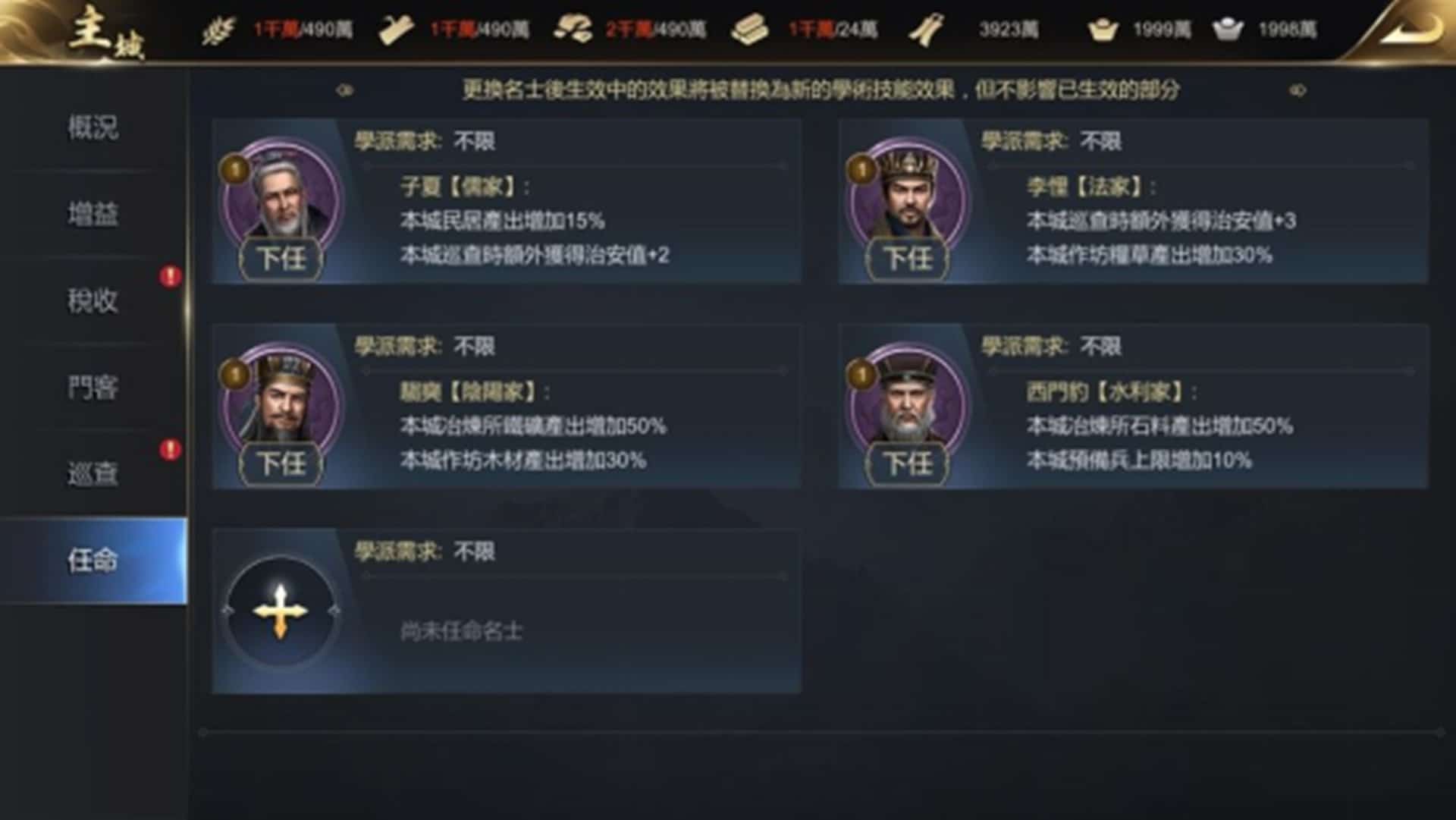 除了武將之外,《大秦帝國》還擁有獨有的「名士系統」,真實還原了春秋戰國諸子百家,名士們都將成為作戰或建設時的最佳助力。學術型名士可帶來內政加成,提高城池產出,降低城建、征兵時間和消耗;戰略型名士能啟動戰略輔助技能,增加戰鬥傷害,讓戰局變得更有變化性與刺激感。