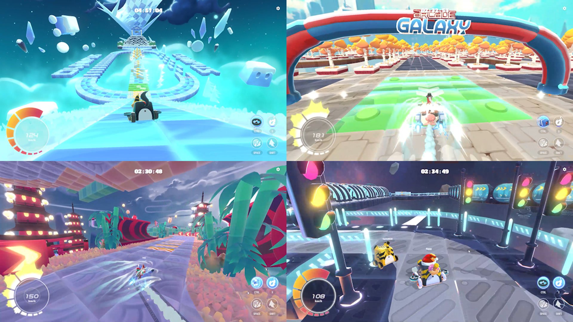 除了豐富的編輯器功能外,《Arcade Galaxy》還提供十種風格各異的場景主題,包括草原、冰原、火山和日式竹林等。這些主題不僅影響地貌與植被的呈現,也讓玩家能根據關卡風格自由搭配,打造出視覺與體驗雙重精彩的賽道場景,讓每次挑戰都充滿新鮮感與樂趣。