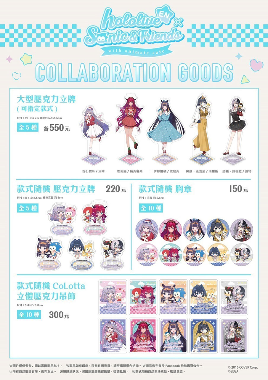 台灣 Animate 咖啡舉辦「索尼克 × Hololive」合作活動