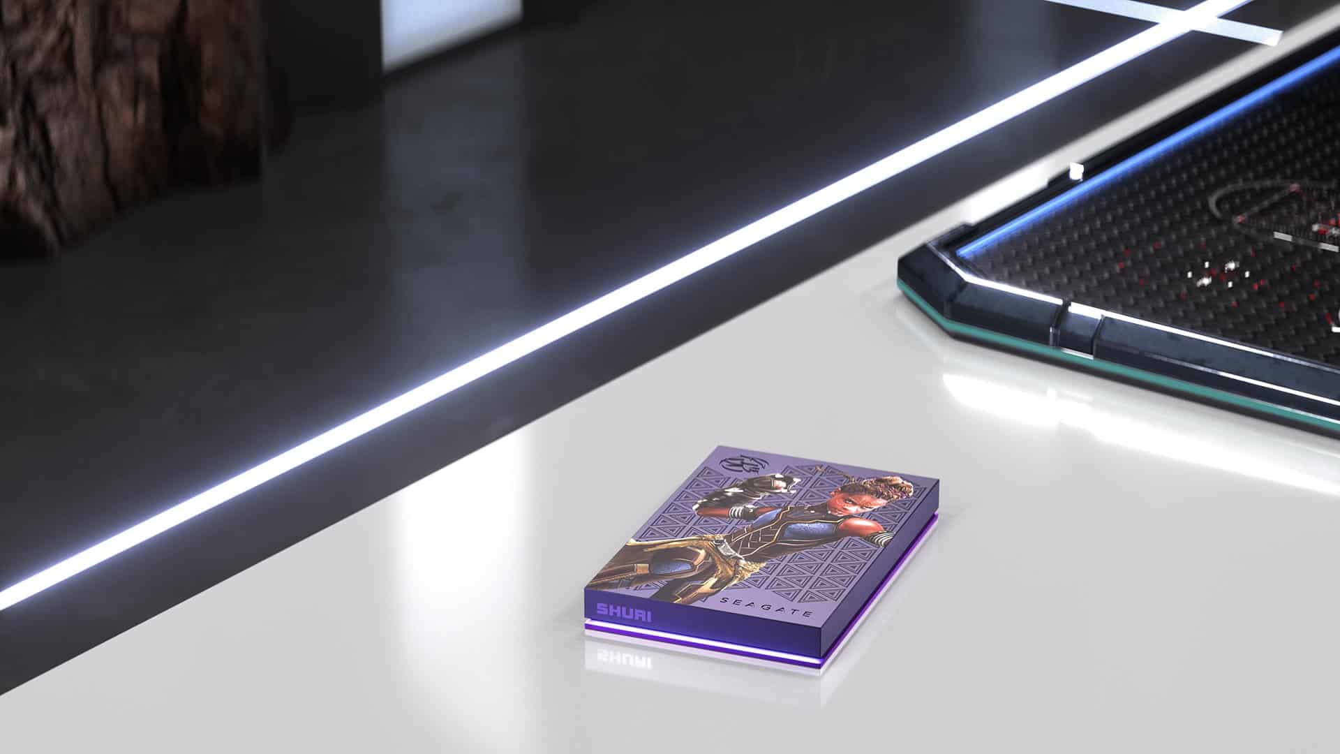 本系列特別版 HDD 特別向 T’Challa、Shuri 與 Okoye 致上敬意,向粉絲呈現獨一無二的 Marvel 美術插圖,RGB LED 燈光還可供自訂,進一步展示每個角色的特色,以洋紅色向黑豹表示敬意,青色代表 Shuri 公主的創新風格,而黃色則可彰顯菁英戰士 Okoye 的強壯力量。